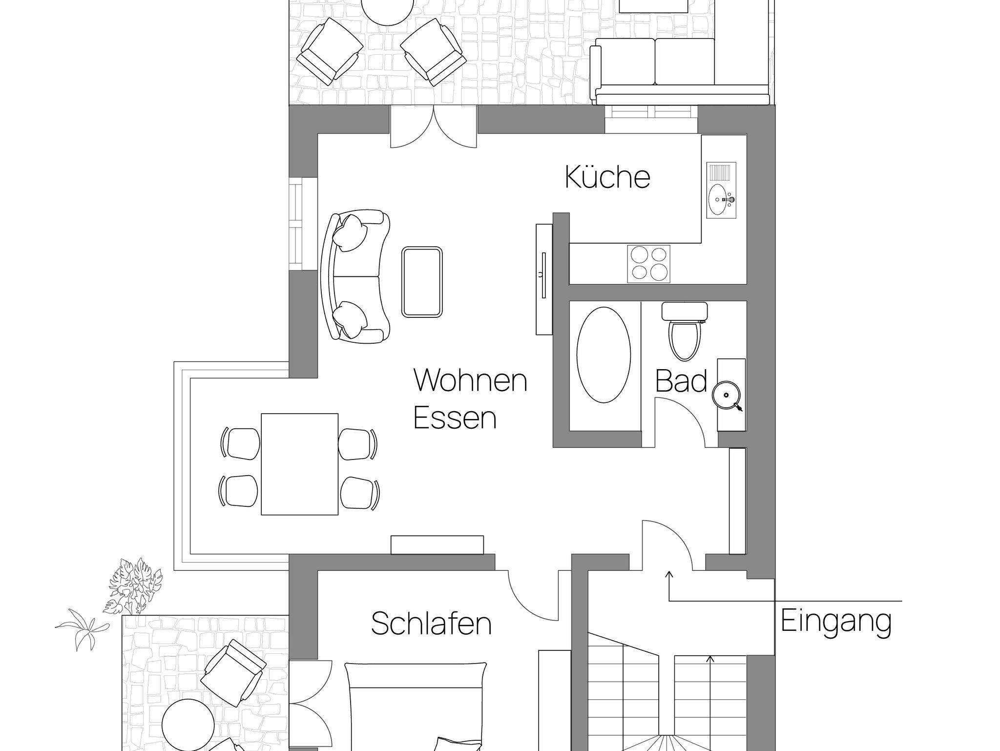 Ebenso ist Platz im Freien für wunderbare Grillabende für Paare und Freunde oder Genuss pur in der Lounge.