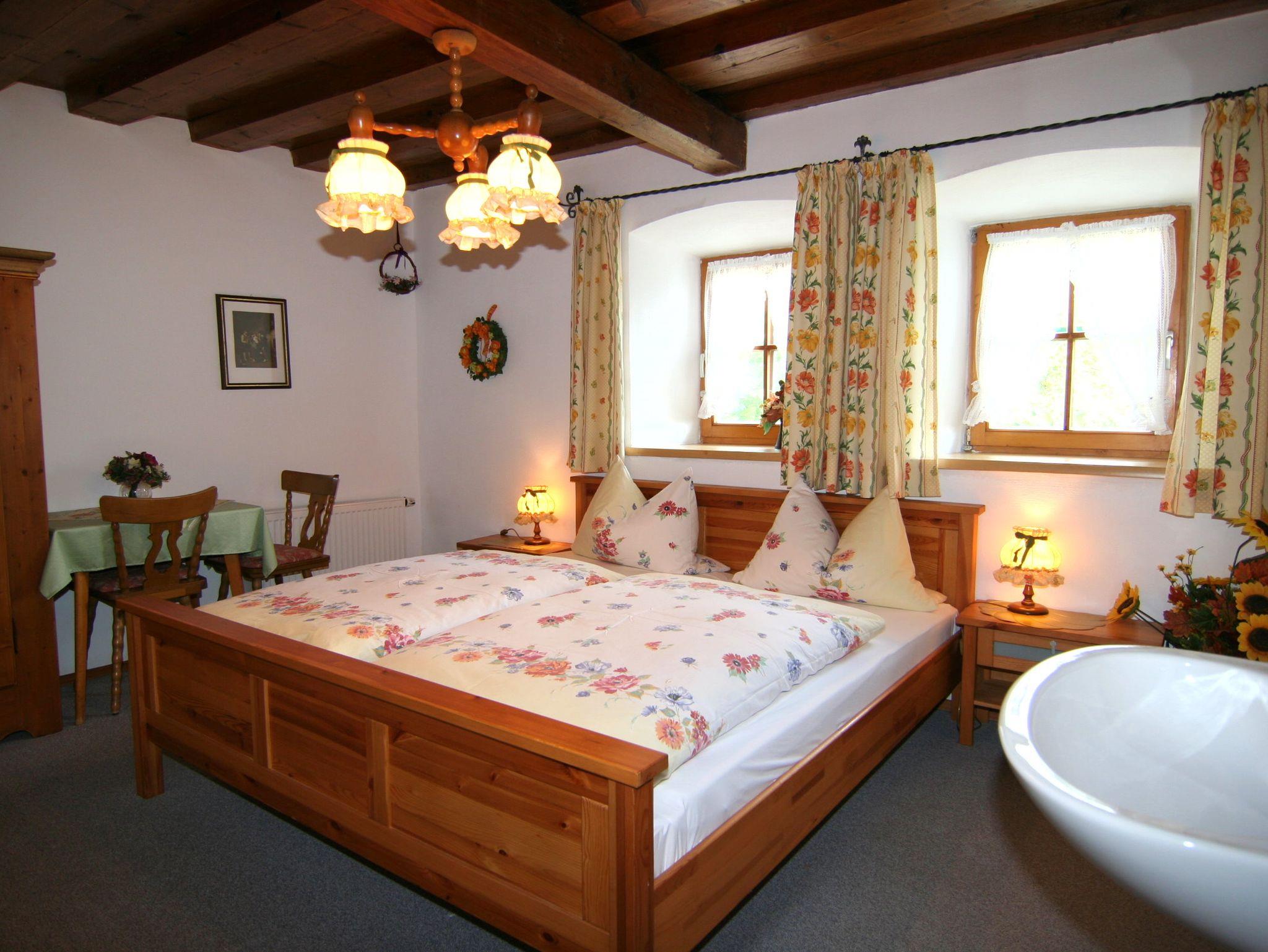 Schön das Sie sich für unsere Ferienwohnung interessieren. Das alte Denkmalgeschützte Haus hat einige besonderheiten,Orginale Holzdecken, Deckengewölbe und einen Überdachten Balkon auf dem Sie auch bei Regentagen die Seele baumeln lassen kör Balkon ist mit Eckbank und Sofa ausgestattet ,wie ein zweites Wohnzimmer im freien, und bietet einen freien Bergblick.Auch in einen alten Bauernhaus brauchen Sie auf Konfort nicht verzichten.