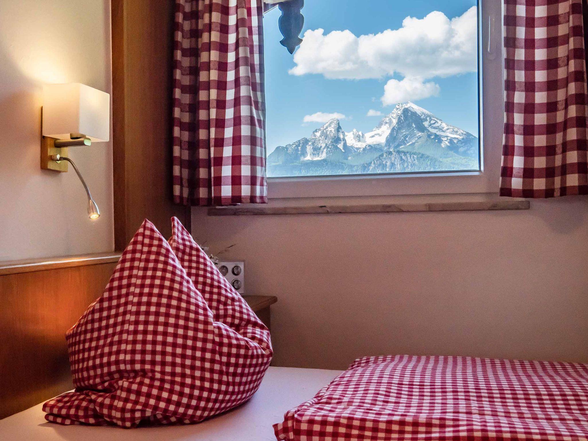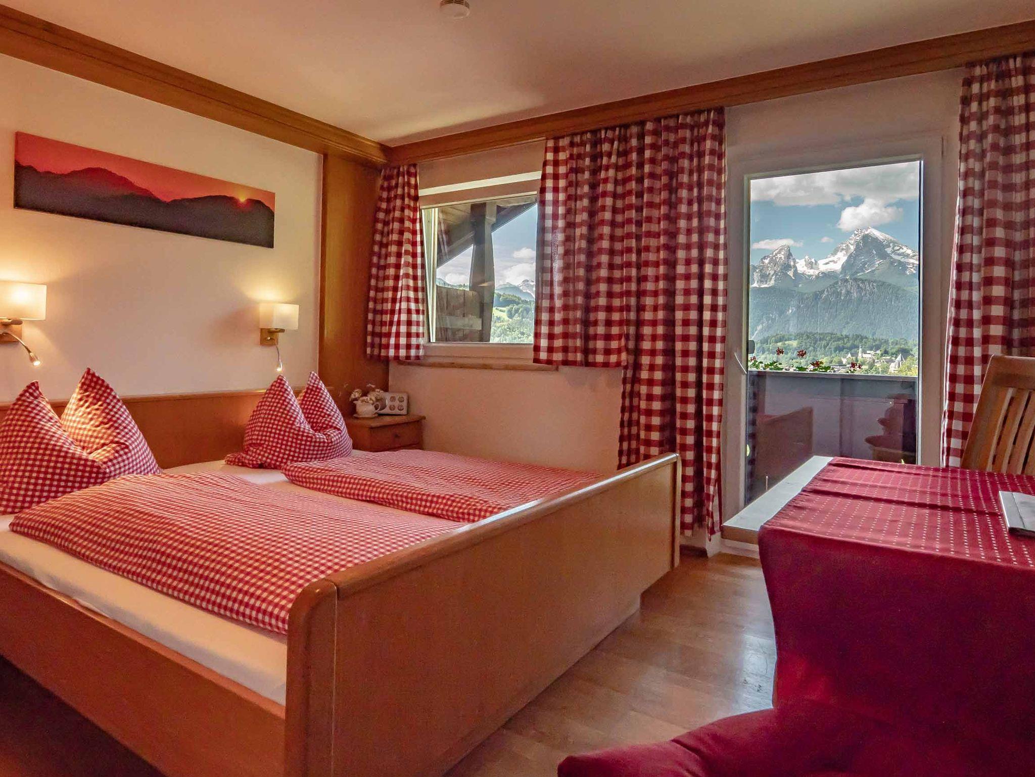 Unsere gemütlichen eingerichteten Zimmer bieten einen grandiosen Ausblick auf den Watzmann und die Berchtesgadener Berge.