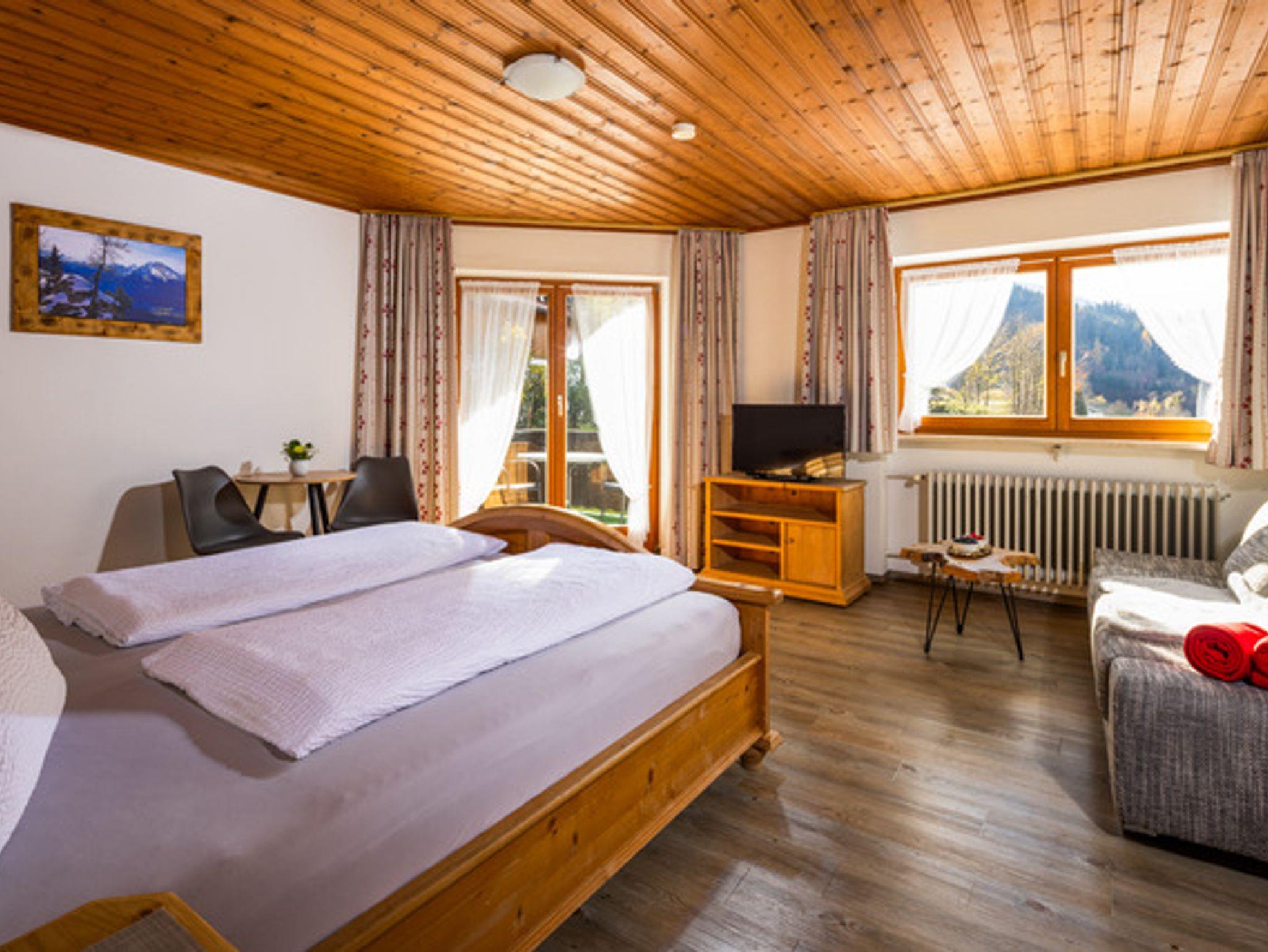 Unsere gemütlichen Gästezimmer für zwei bis vier Personen haben die Klassifizierung von vier Sternen erhalten. In unseren beiden einladenden Ferienwohnungen haben jeweils zwei bis sechs Personen Platz. Wir haben einen schönen, gemütlichen Aufenthaltsraum, in dem wir uns gerne mit unseren Gästen zusammen setzen und austauschen. Um unser reichhaltiges Frühstücksbuffet genießen zu können, laden wir Sie herzlich in unseren Frühstückraum mit großen Fenstern und fantastischem Bergblick ein. Vor dem Haus liegt die Liegewiese und unser beheiztes Schwimmbad. Von Mitte Mai bis ungefähr September, je nach Witterung, können Sie hier so richtig entspannen, immer mit Blick auf unsere herrlichen Berge. Wir freuen uns auf Ihre Kinder. Im Haus haben wir ein Spielzimmer eingerichtet, im Garten eine Schaukel aufgestellt. Der ans Haus direkt angrenzende Bergwald lädt dazu ein, tolle Abenteuer in der Berchtesgadener Natur zu erleben.Unser Haus ist ein Nichtraucherhaus.