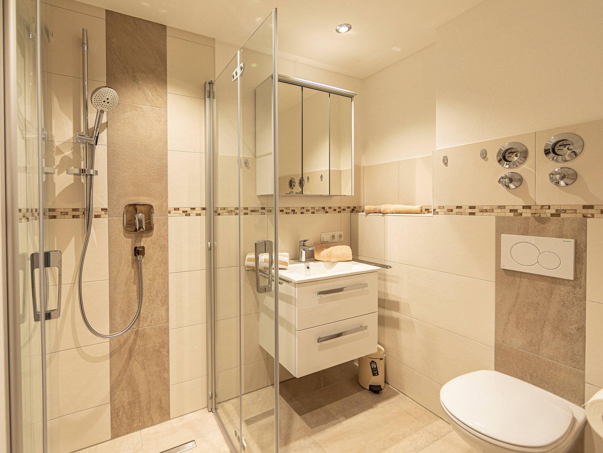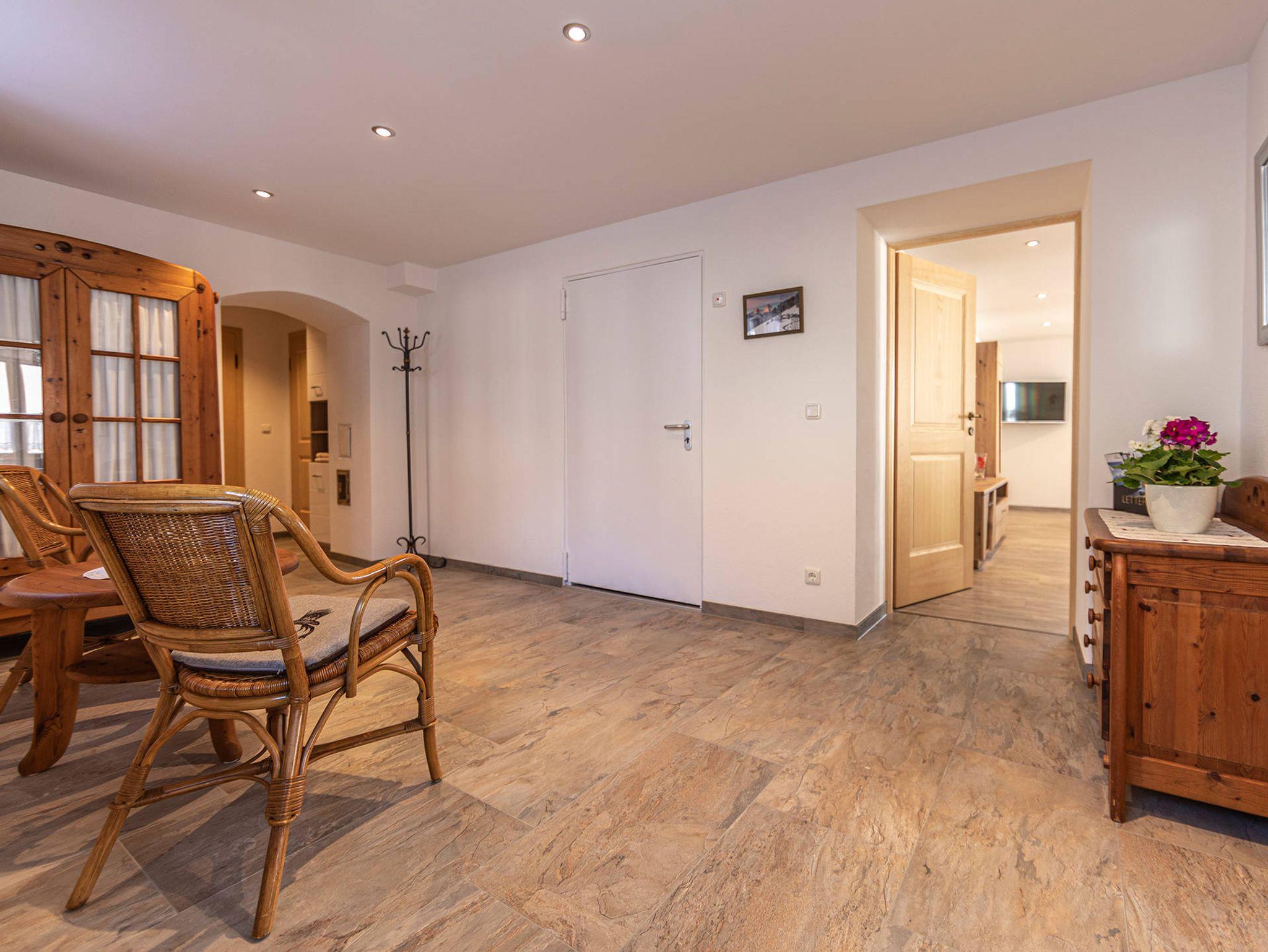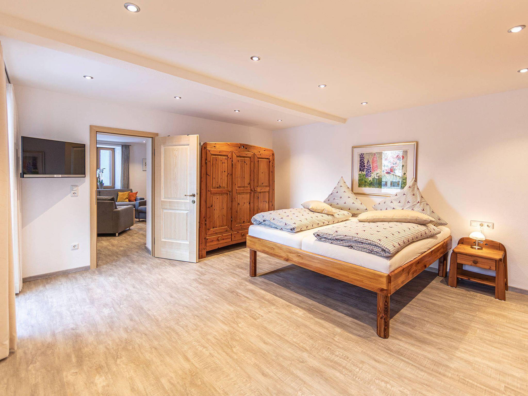 In unserer 87 qm großen Ferienwohnung nutzen Sie WLAN in allen Räumen kostenlos. Alle Räume verfügen über eine Fußbodenheizung. Unsere Ferienwohnung hat einen großen Vorraum/Flur mit einer Sitzecke, ein Badezimmer mit Dusche/WC, ein zusätzliches WC mit Fenster, eine voll ausgestattete Küche mit Esstisch und Sitzgelegenheiten, ein großes Wohnzimmer (27 qm) mit einer Couch (kann bei Bedarf zu einem Schlafbett ausgeklappt werden) mit zwei Polstersessel und SAT-TV mit großem Bildschirm, ein Esstisch mit Stühlen im Wohnzimmer, ein Schlafzimmer (22 qm) mit Doppelbett und zusätzlichem SAT-TV, ein Raum mit Waschmaschine und Wäschetrockner zur kostenlosen Benutzung mit Abstellmöglichkeit für zum Beispiel Ski und Fahrräder. Bei Bedarf ist ein eigenes Zimmer mit Schlafmöglichkeiten für Kinder mit zusätzlichem Reisekinderbett vorhanden. Ihnen steht eine möblierte Terrasse auf der Südseite mit direktem Zugang vom Schlafzimmer aus zur Alleinbenutzung zur Verfügung.