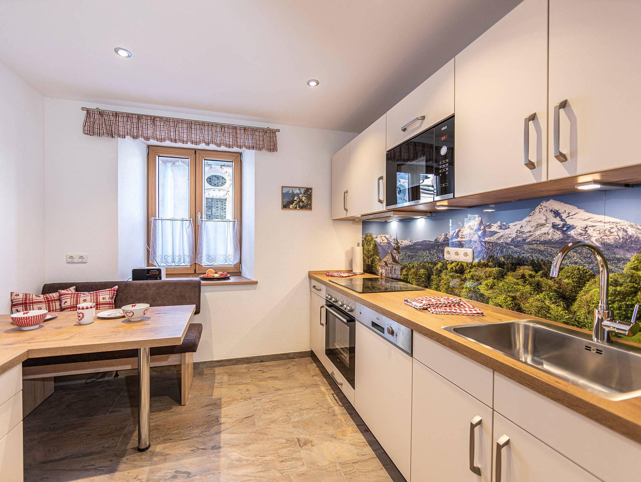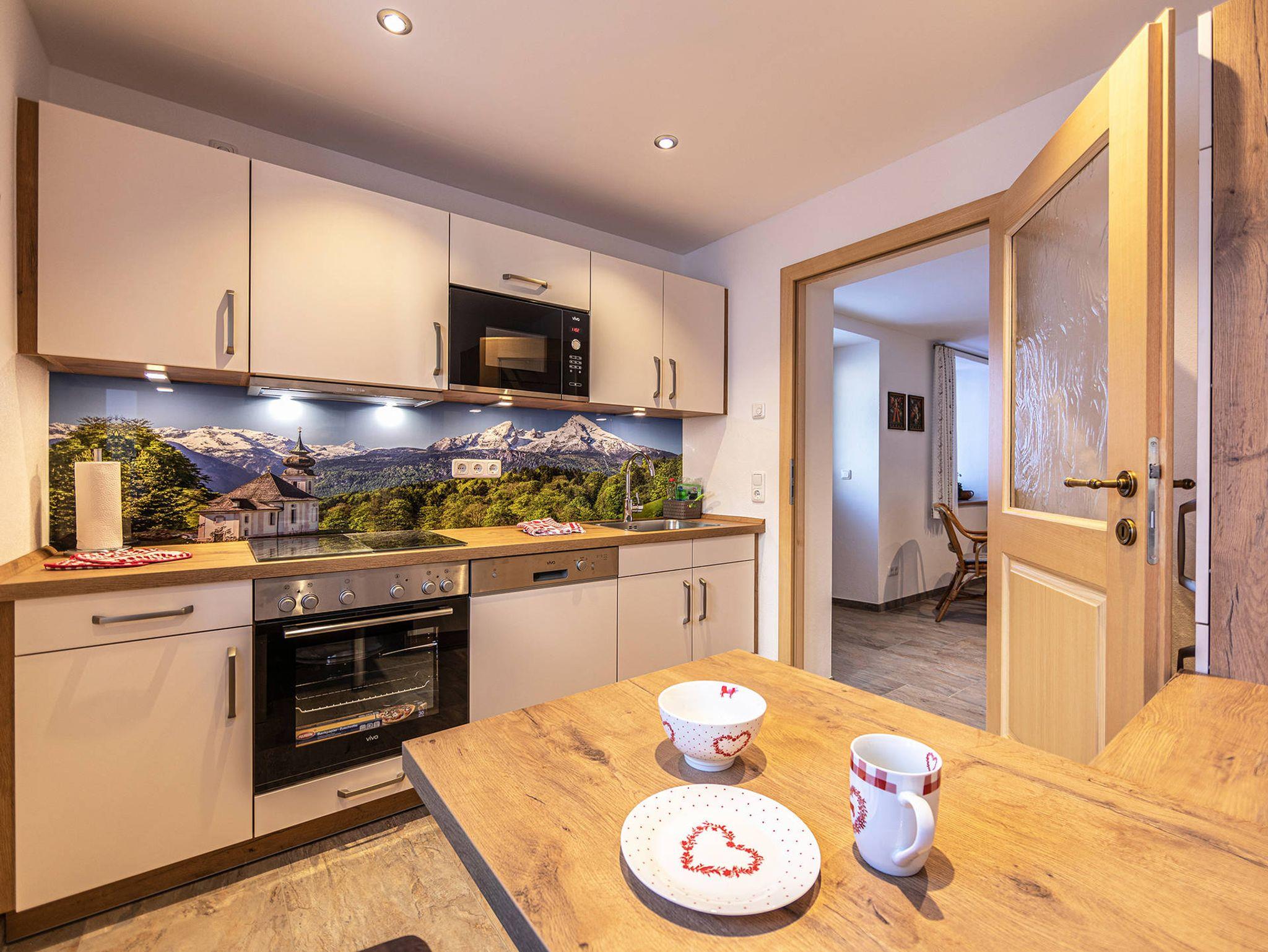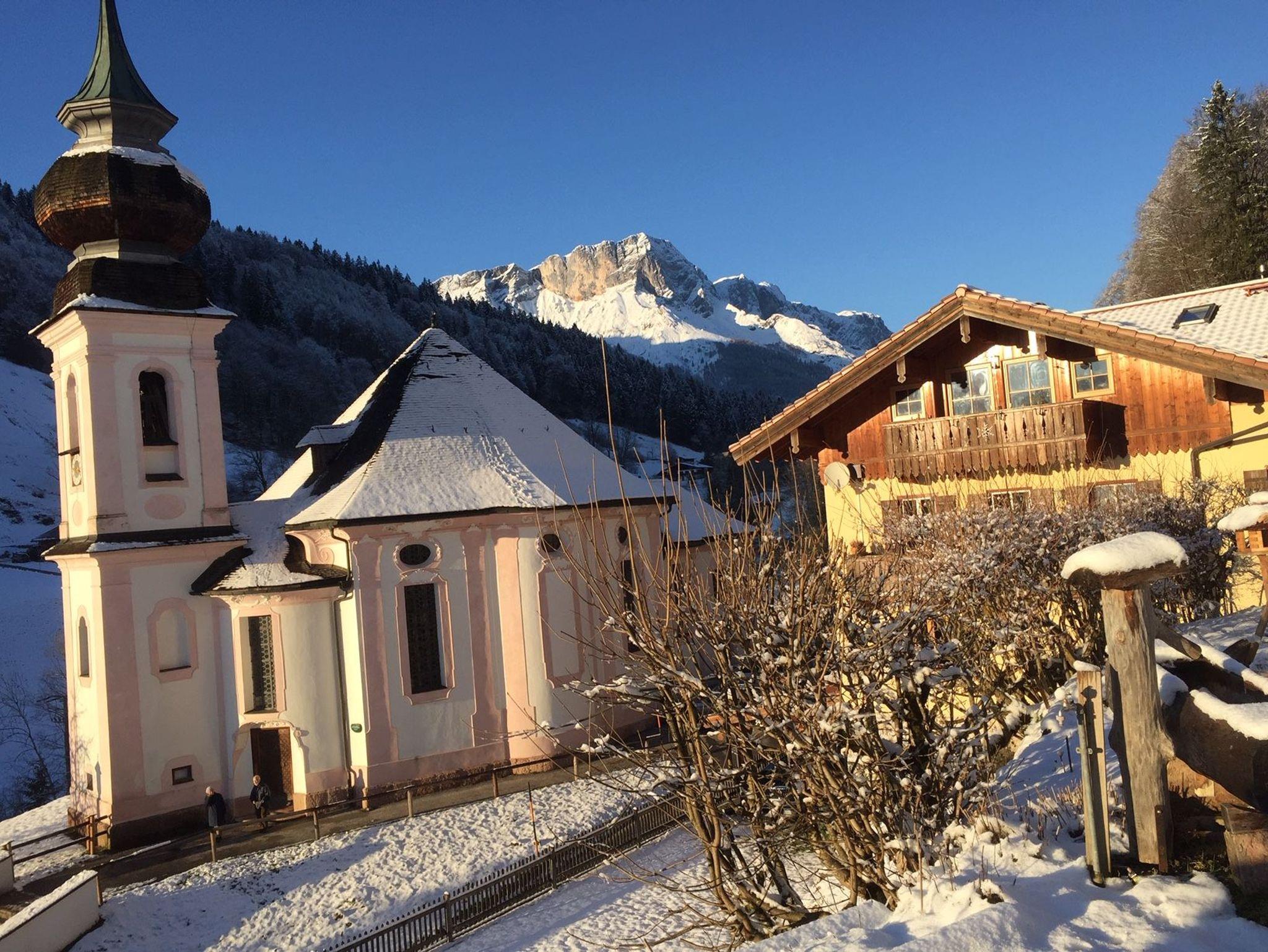 Unsere Ferienwohnung ist nur 3 Kilometer vom Ortskern Berchtesgaden entfernt und liegt dennoch in traumhafter Panoramalage auf 750 Metern Höhe. Das Haus befindet sich im denkmalgeschützten Ensemble neben der berühmten Barockwallfahrtskirche (bekannte Postkartenidylle). Vom Schlafzimmer, vom Wohnzimmer und von der Terrasse aus können Sie den großartigen freien Blick zum Watzmann genießen. Die Bushaltestelle ist nur 100 Meter entfernt. Eine Gaststätte mit gut bürgerlicher Küche befindet sich in der direkten Nachbarschaft. In unmittelbarer Umgebung finden Sie viele schöne Wanderwege. Unsere 87 qm große Ferienwohnung wurde 2019 komplett renoviert/saniert und mit hochwertigen Möbeln ausgestattet. Unser Haus ist ein Nichtraucherhaus und es sind keine Haustiere gestattet. Ein kostenloser Parkplatz steht Ihnen direkt vor unserem Haus zur Verfügung.