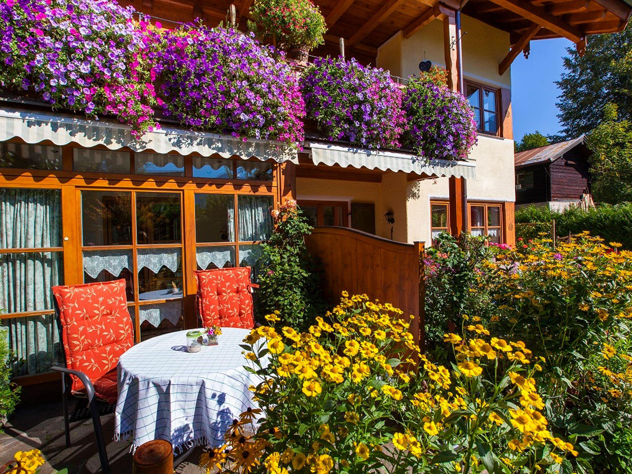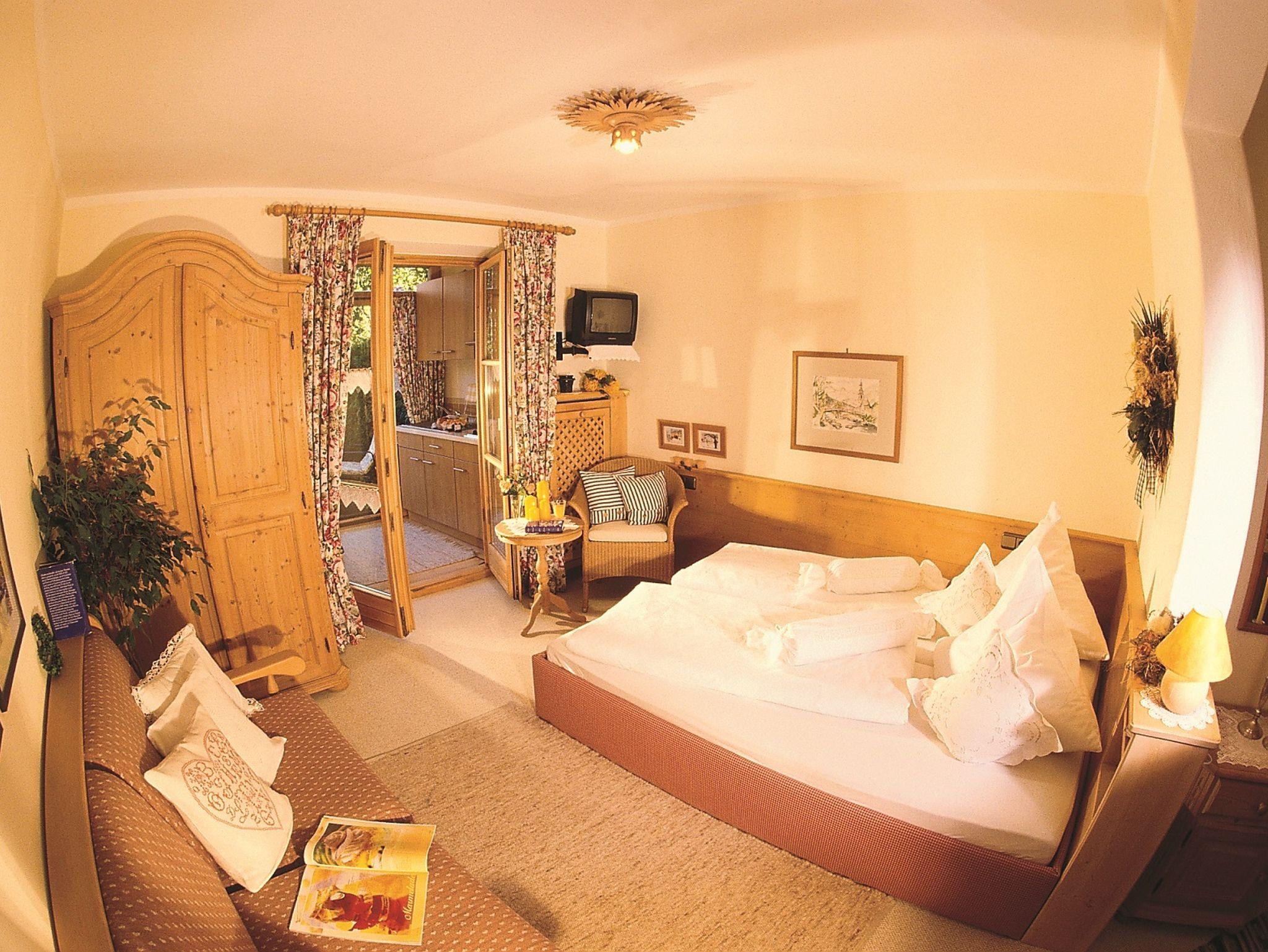 Komfortabel und liebevoll im Landhausstil eingerichtete 1 1/2-Zimmer-Nichtraucher-Wohnung mit separatem Eingang. Die Wohnung befindet sich in Süd-Lage mit abgeteilter uneinsichtiger Terrasse zum Blumengarten und einem schönen Bergblick. Das Wohn-Schlafzimmer ist ausgestattet mit einem Doppelbett und Sitzcouch; im kleinen Wintergarten befindet sich die Einbauküche mit 2-Platten-Ceranfeld, Dunstabzug, Kaffee- und Espressomaschine, Wasserkocher, Toaster und eine gemütliche Essecke. Desweiteren verfügt die Wohnung über Direktwahl-Telefon, W-LAN, Kabel-TV, Safe, Haarfön und eine eigene GARAGE mit Auflademöglichkeit für E-AUTO !!! Raucher bitten wir, ihre Zigarette auf der Terrasse zu geniessen.