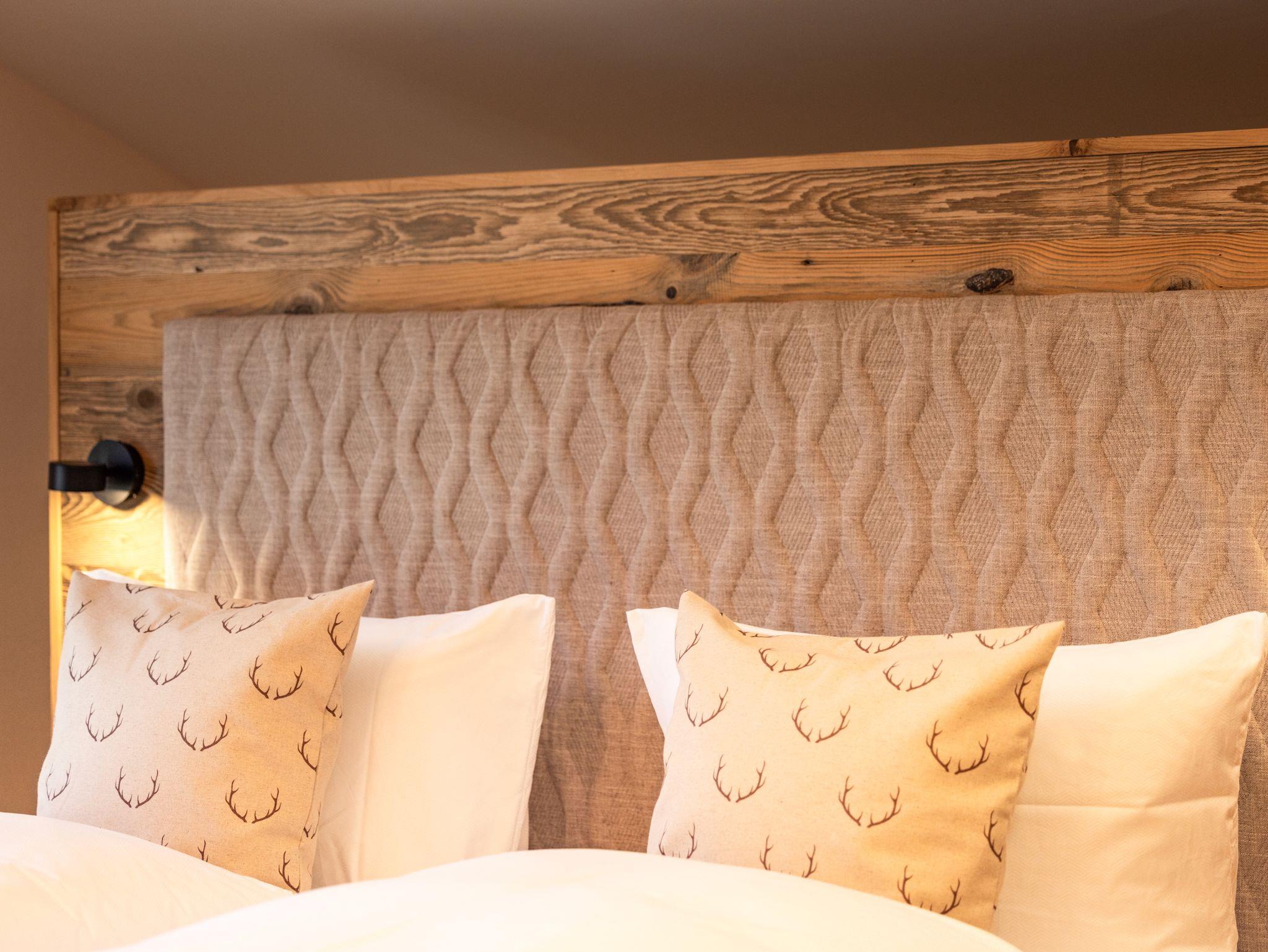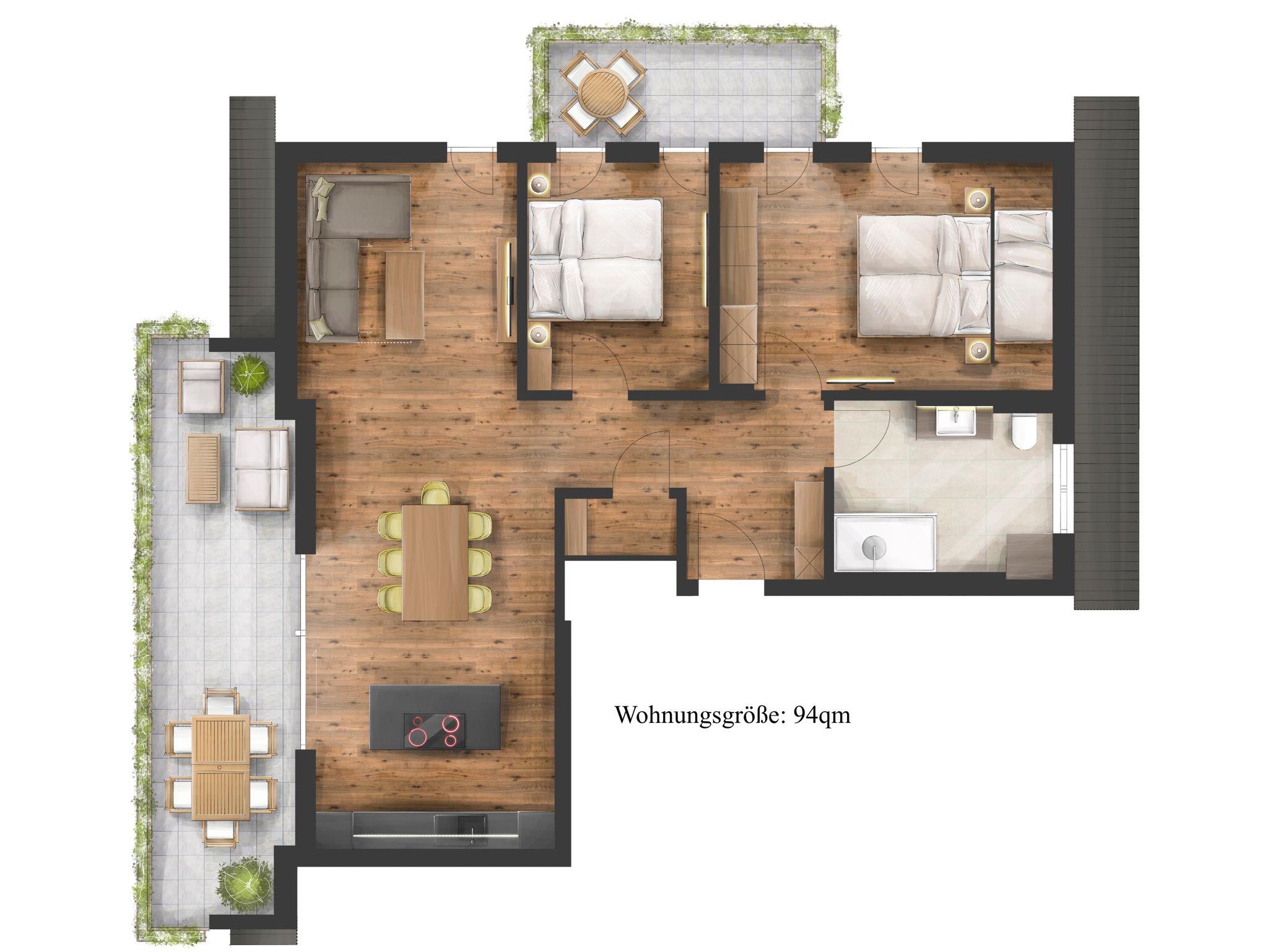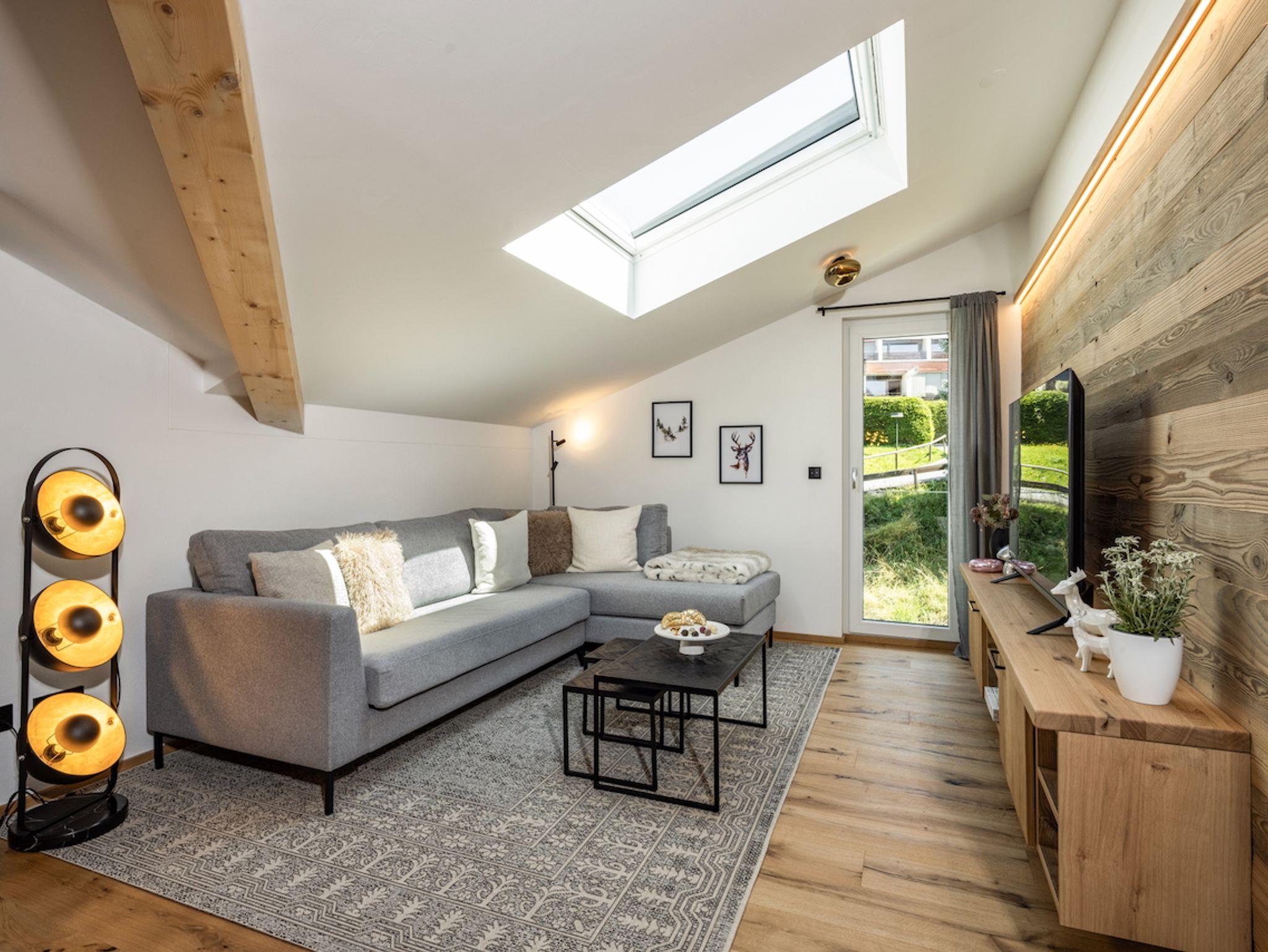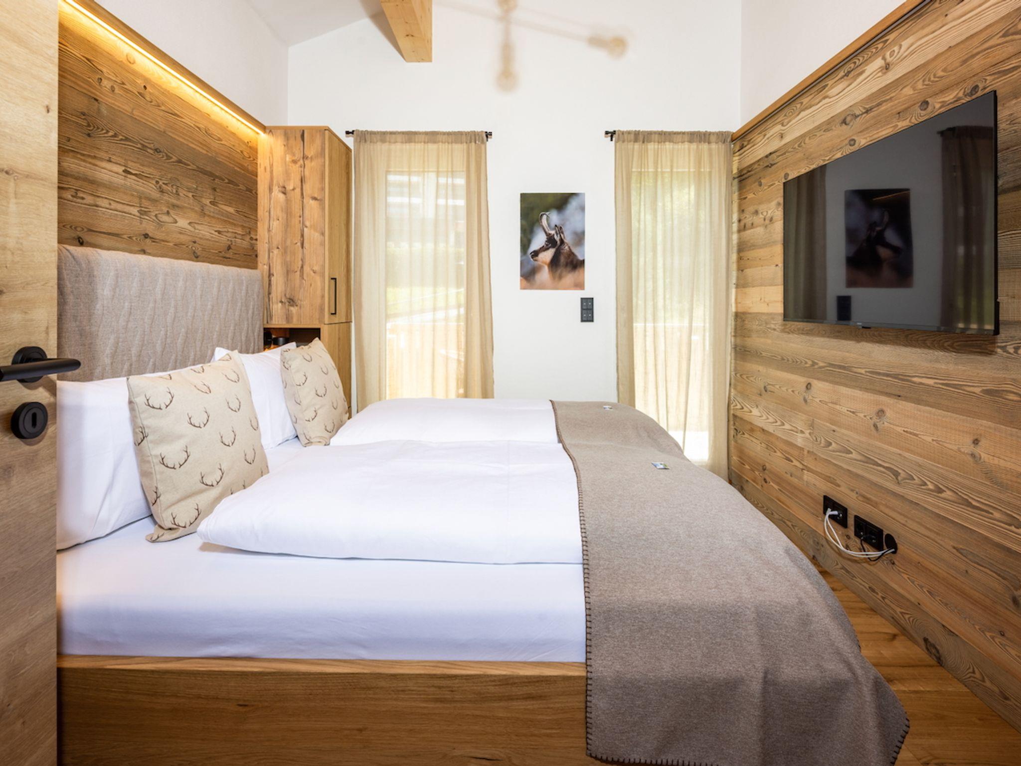 Die Ferienwohnung Das Gipfelglück ist sehr großzügig geschnitten, klimatisiert und bietet mit zwei Schlafzimmern, zwei Balkonen sowie einem offenen Wohn- und Essbereich viel Raum für Erholung und gemeinsame Zeit. Hohe Decken sorgen für ein luftiges Raumgefühl, während Wandvertäfelungen aus Altholz und liebevoll ausgewählte Dekoration eine warme, stilvolle Atmosphäre schaffen. Die hochwertige Innenausstattung und die Liebe zum Detail spiegeln sich in jedem Bereich der Wohnung wider. Das Gipfelglück ist neu im eleganten Chalet-Design mit alpinem Charme eingerichtet – mit natürlichen Materialien, maßgefertigten Echtholzmöbeln und ausgesuchten Wohnakzenten.