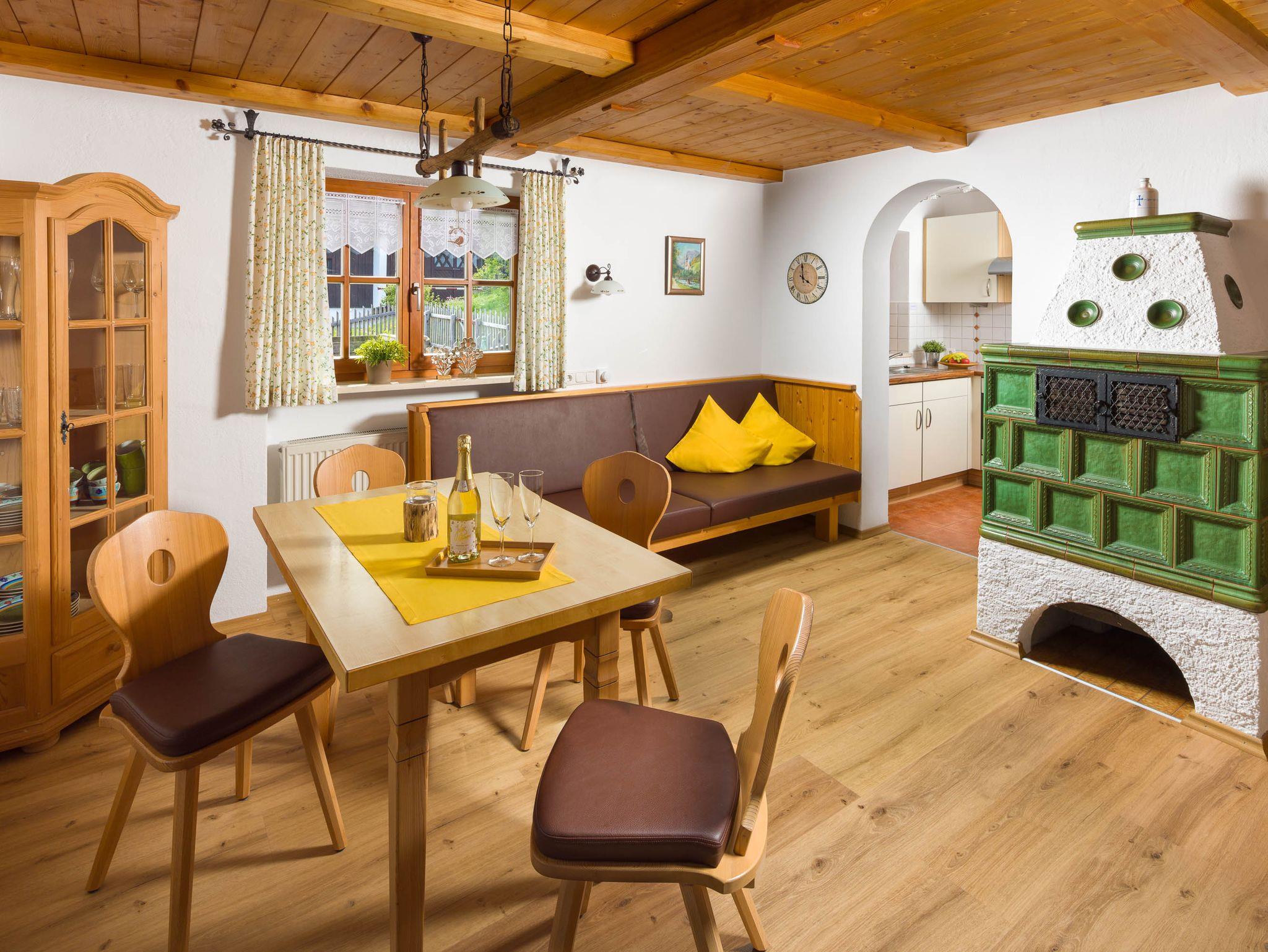 Unser kleines Ferienhäuschen liegt in ruhiger und sonniger Alleinlage, umrahmt von den Berchtesgadener Bergen. Es wurde liebevoll im ländlichen Stil mit Holzböden und Holzdecken sowie einem Kachelofen und einer sehr guten Kleinausstattung eingerichtet. Das Häuschen besteht aus zwei Schlafzimmern, Wohnzimmer, Küche, Bad und separatem WC, Diele, Abstellraum, einem Balkon und einer Terrasse mit Gartenmöbeln und Liegestühlen. Das Häuschen verlockt zu einem romantischen Urlaub zu zweit oder zu einem erholsamen Familienurlaub. Ihre Kinder können in der freien Natur ungestört spielen und toben. Unser kleiner Bauernhof mit Mutterkuhhaltung verlockt Ihre Kinder zum Staunen und Zuschauen oder einmal selbst Hand anzulegen. Auch den aktiven Urlauber lädt unser Haus ein. Direkt davor führen Wanderungen, Berg- und Klettertouren (neuer Klettersteig) zu einem erlebnisreichen Urlaubstag. Unsere drei Gaststätten in Maria Gern können durch einen Abendspaziergang oder durch eine Ihrer Wanderungen bzw. Bergtouren gut erreicht werden. Für Informationen über Wanderungen, Berg- und Klettertouren stehen wir Ihnen natürlich gerne zur Verfügung.