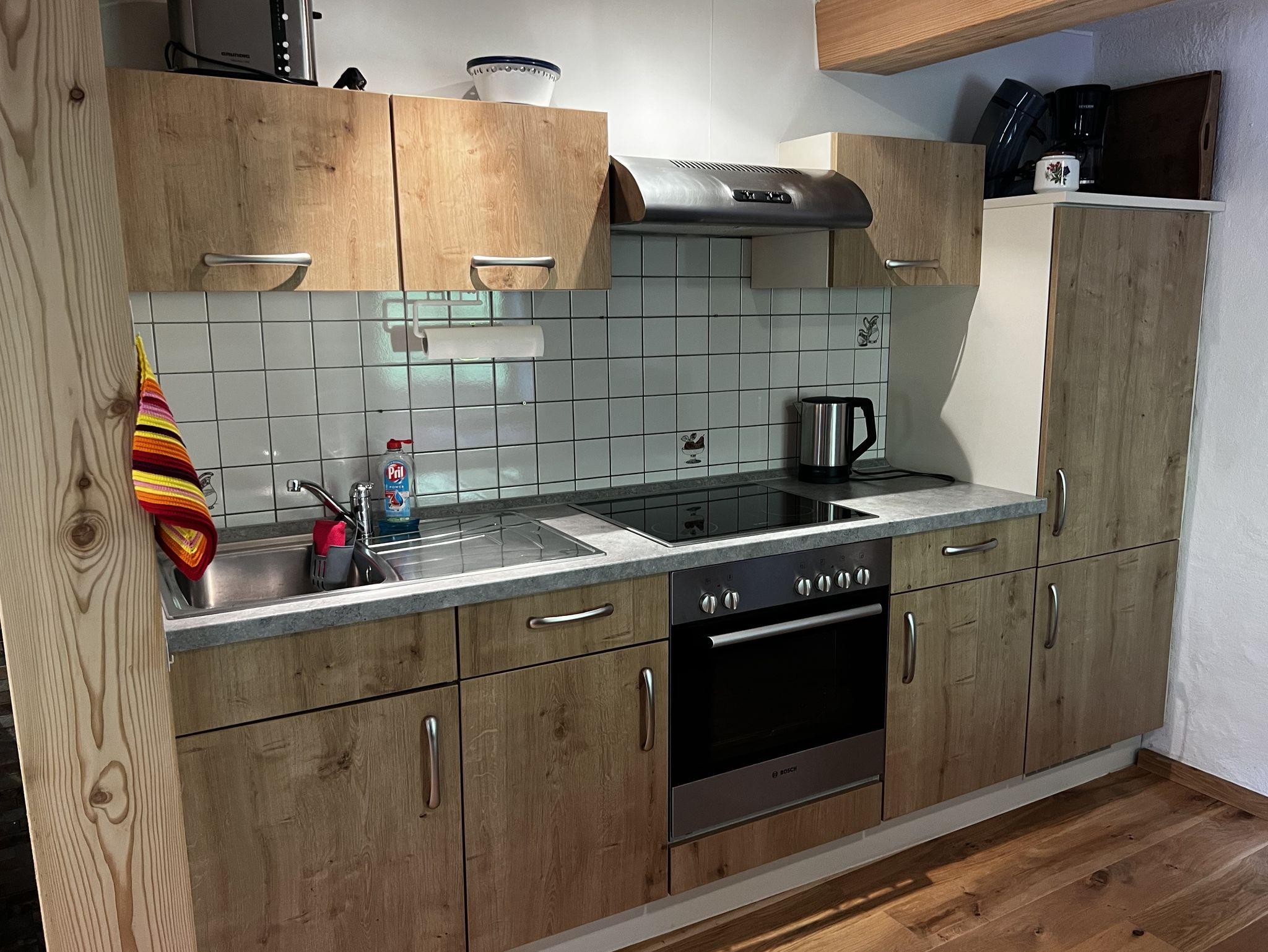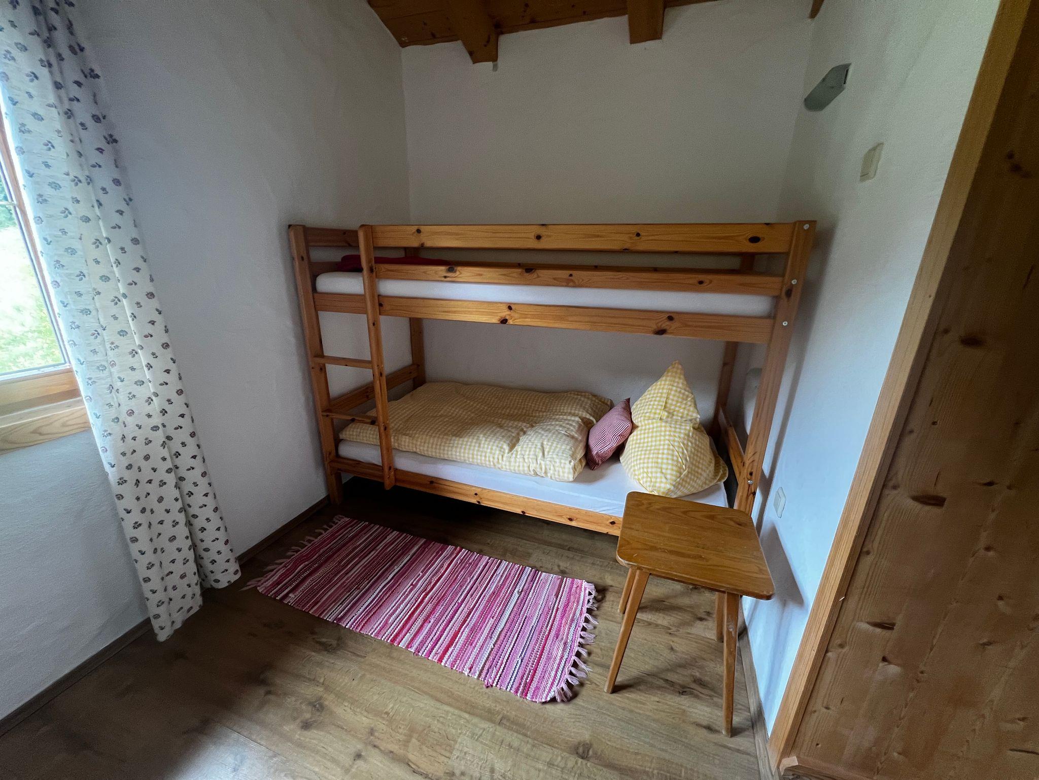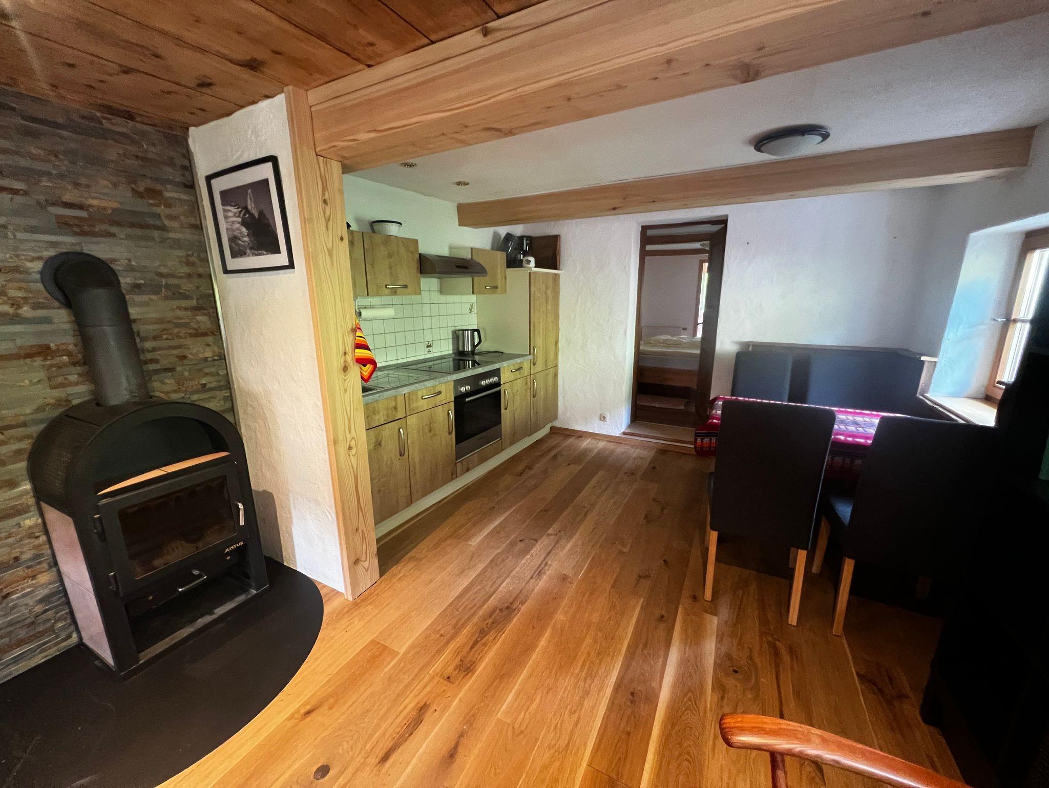 Die Ferienwohnung Hoher Göll ist ca. 50 m2 groß und bietet Platz für max. 4 Personen (1 Doppelbett, 1 Stockbett). Die Wohnung befindet sich im ersten Stock unseres Hauses. Sie besteht aus einer großen Wohnküche, einem Schlafzimmer mit Doppelbett, einem Zimmer mit Stockbett und einem Bad (inkl. WC und Dusche).