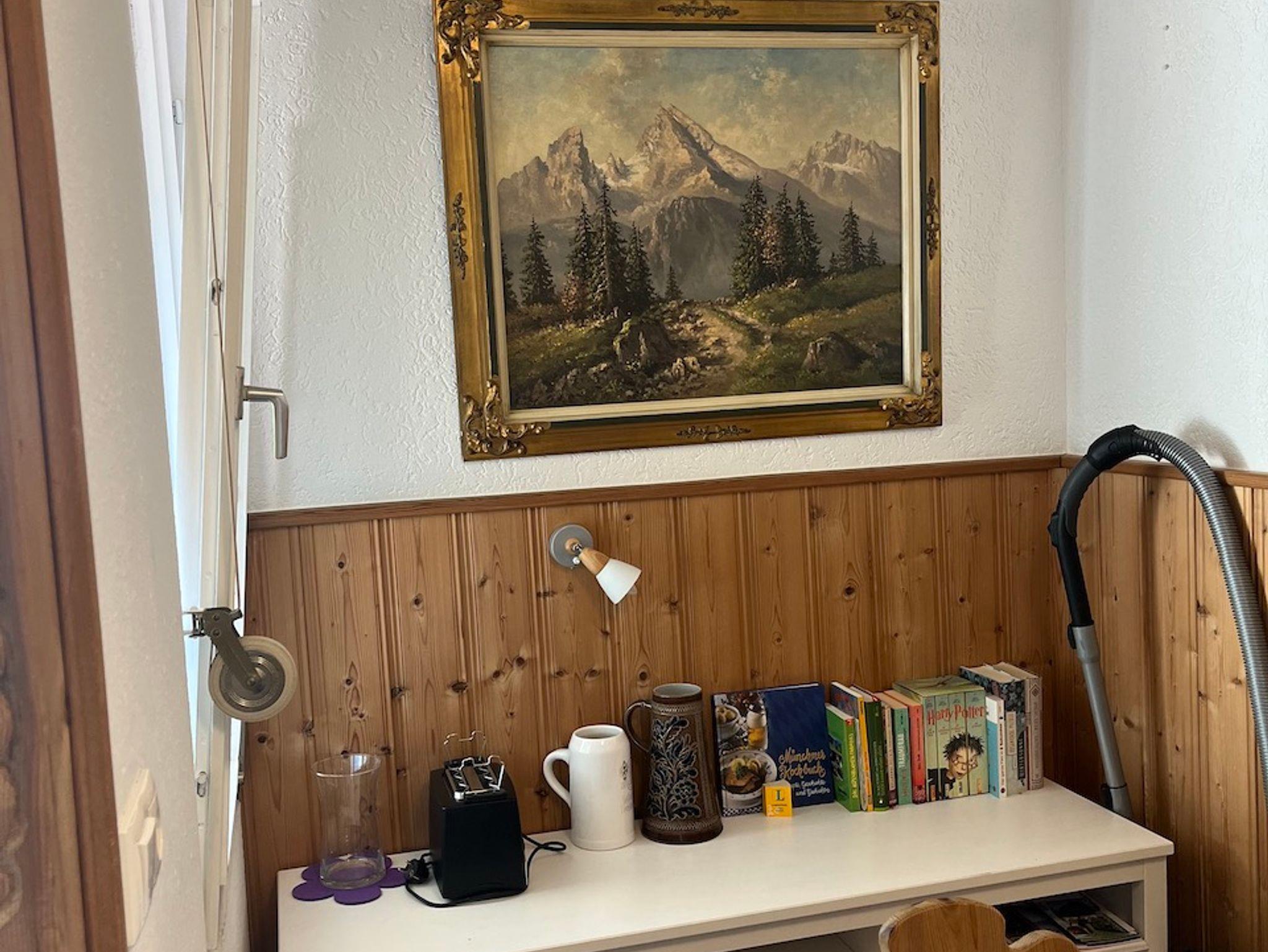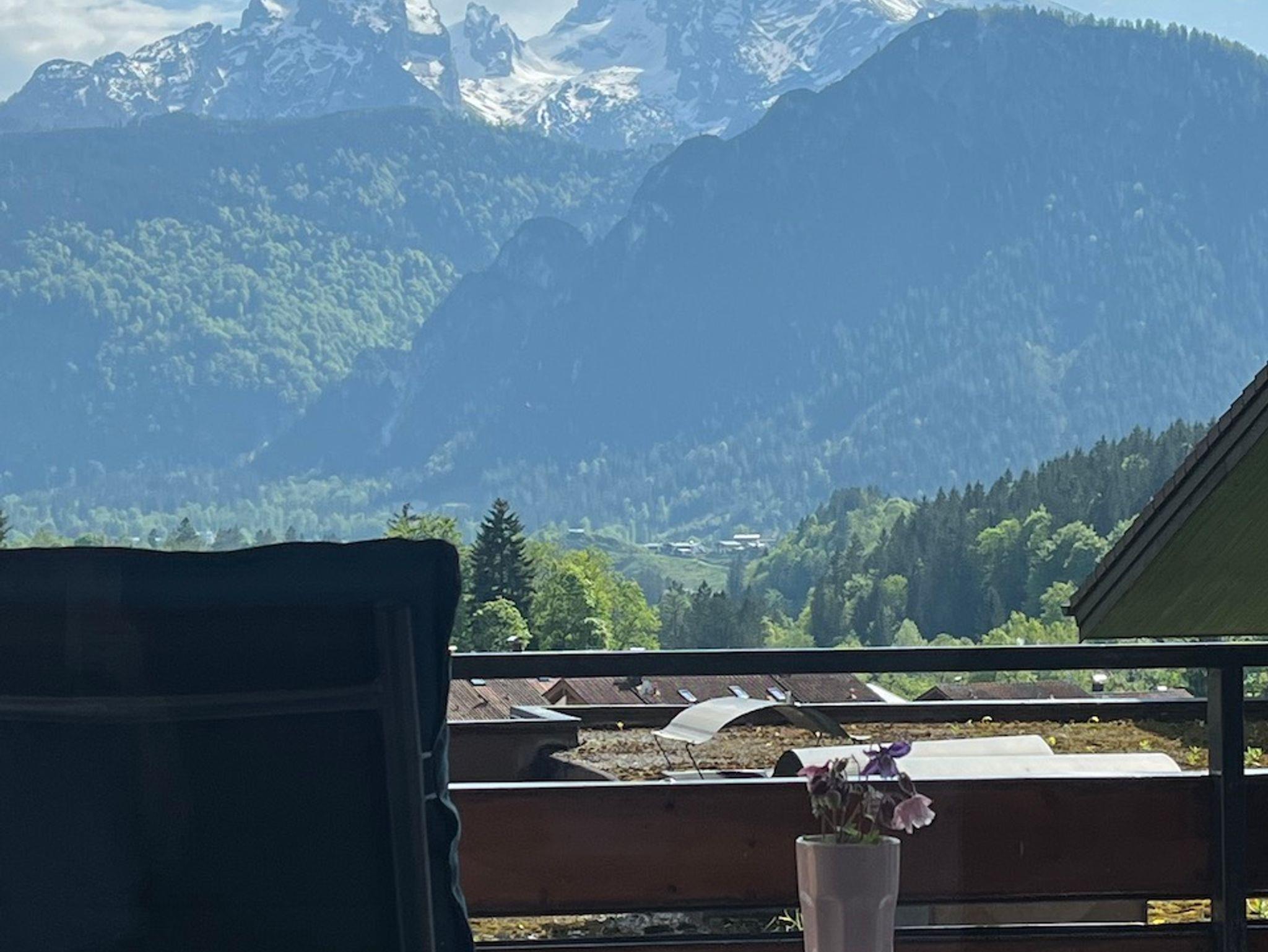 Ihr Urlaubsdomizil befindet sich im 1.Obergeschoß und bezaubert allein schon durch die grandiose Aussicht auf die spektakulären Berge rundum. Das Haus liegt sehr ruhig auf einer Anhöhe am Ortsrand und stammt aus den 70ern. In der Anlage befinden sich 70 zum Großteil fest bewohnte Wohneinheiten. Zum Ein-und Ausladen fahren Sie direkt vor die Haustür und der Parkplatz befindet sichunterhalb des Hauses. Dieser Parkplatz gehört zum Haus. Der Bahnhof und der Königssee sind nicht weit. Ein Bäcker, ein Supermarkt und eine Pizzeria sind gut zu Fuß zu erreichen. Bitte beachten Sie laut Hausrecht unsere Coronaregelungen.