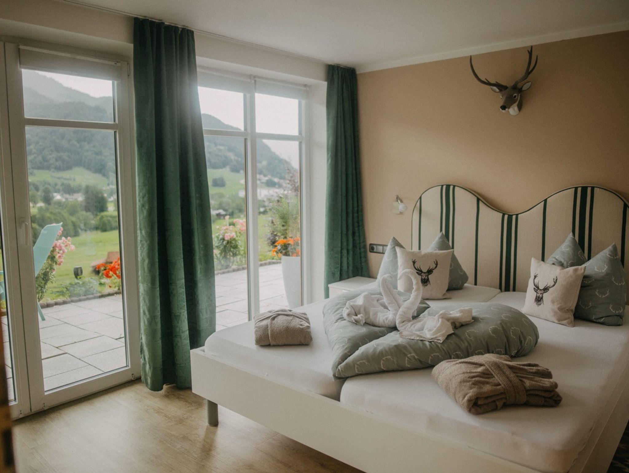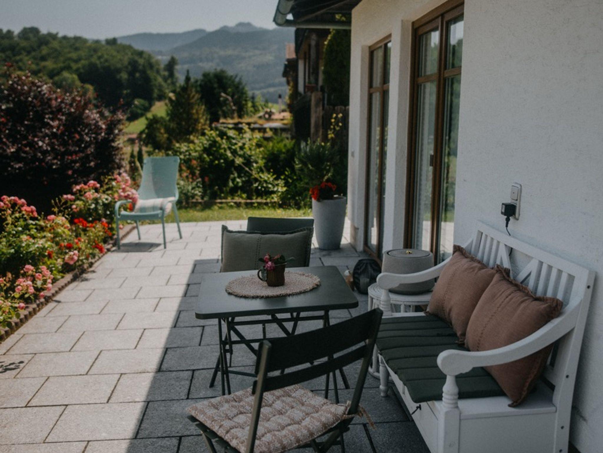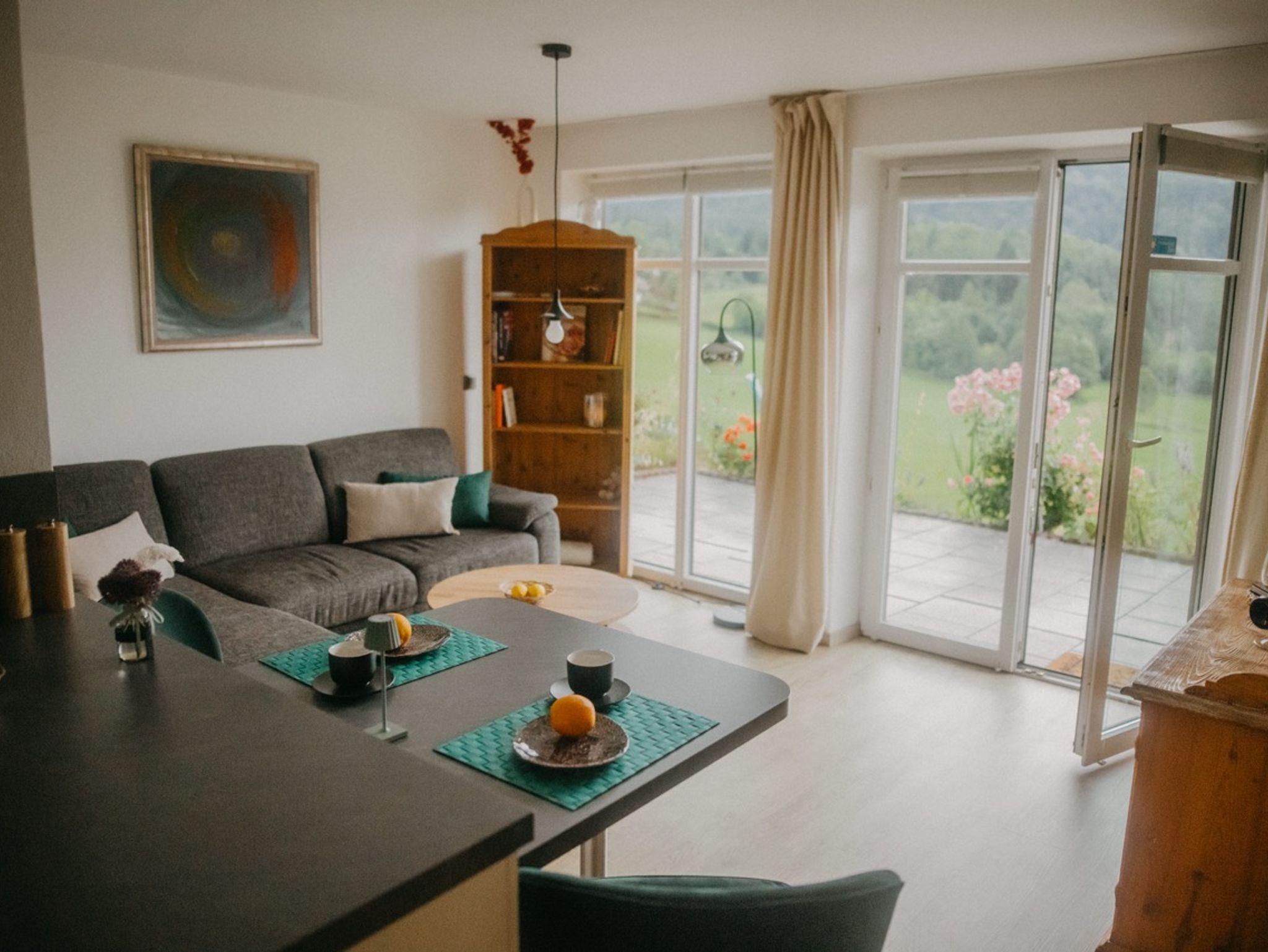 Unsere beiden Ferienwohnungen bieten Ihnen einen atemberaubenden Blick auf die umliegenden Berge und Wiesen – ein wahrer Augenschmaus, der Sie jeden Tag aufs Neue verzaubern wird. Die 80 m² große, private Terrasse lädt dazu ein, die frische Bergluft zu genießen, während Sie entspannen und die Natur um sich herum auf sich wirken lassen. Ob beim Frühstück in der Morgensonne oder beim abendlichen Glas Wein unter dem Sternenhimmel – hier wird jeder Moment zum besonderen Erlebnis.