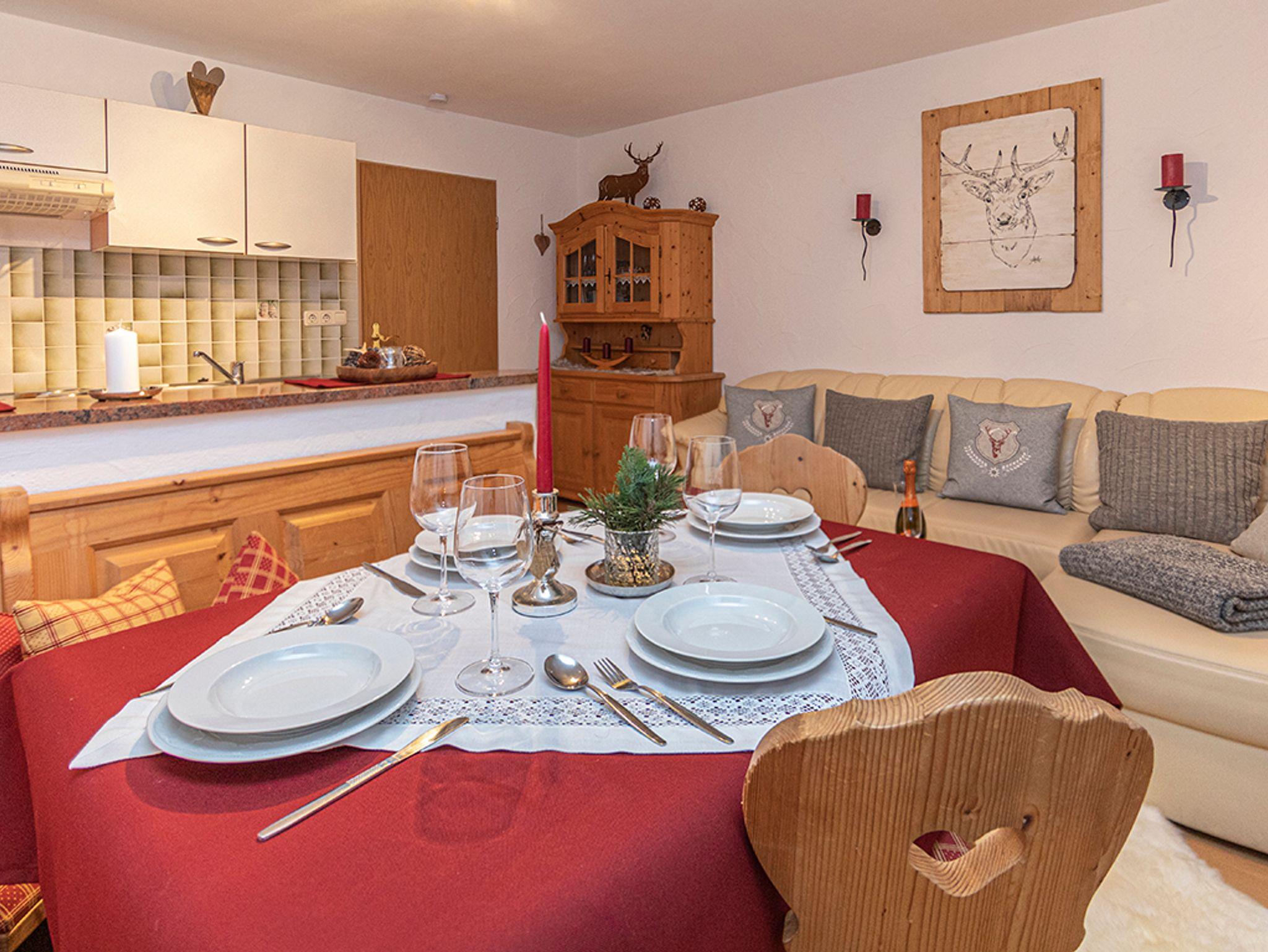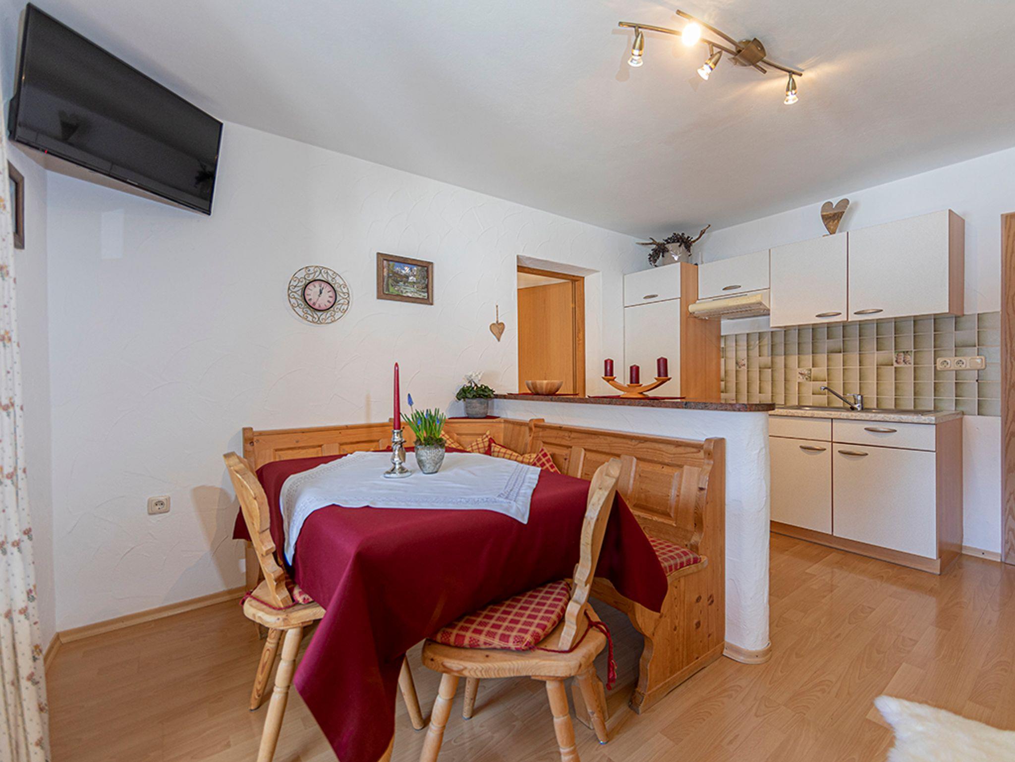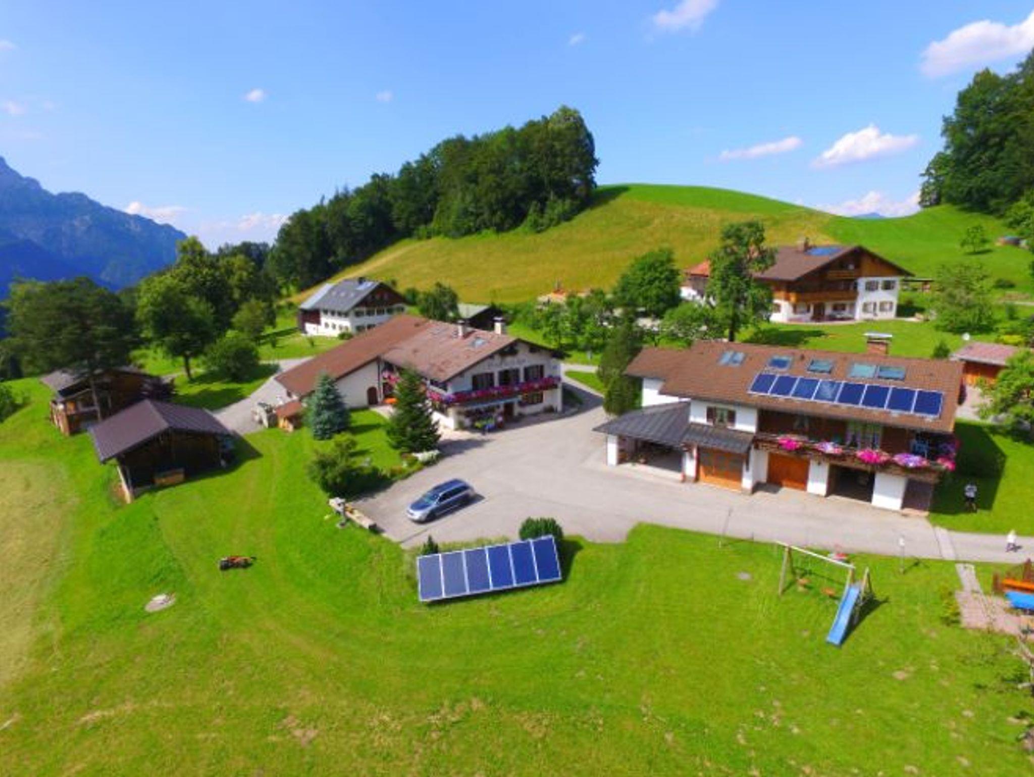 Die Ferienwohnung befindet sich im ersten Stock unseres Bauernhofes (ohne Tierhaltung).Sie verfügt über zwei Schlafzimmer im Landhausstil, eine Wohnküche mit Essecke und einer Ledercouch mit Ottomane und Couchtisch. Außerdem befindet sich in der Ferienwohnung ein Badezimmer mit Dusche/WC und Badheizkörper/Handtuchwärmer. Der zugehörige Balkon ist von der Wohnküche, sowie auch von einem der Schlafzimmer begehbar. Gerne stellen wir Ihnen auch einen Brötchenservice zur Verfügung.Parkplatz (Garage nach Verfügbarkeit gegen Aufpreis), WLAN, Bettwäsche und Handtücher sind inklusive.Zudem sind Abstellmöglichkeiten für Fahrräder und Skier vorhanden.Achtung: Bitte beachten Sie, dass der Strom je nach Verbrauch zu EUR 0,40 pro KWH separat berechnet wird.