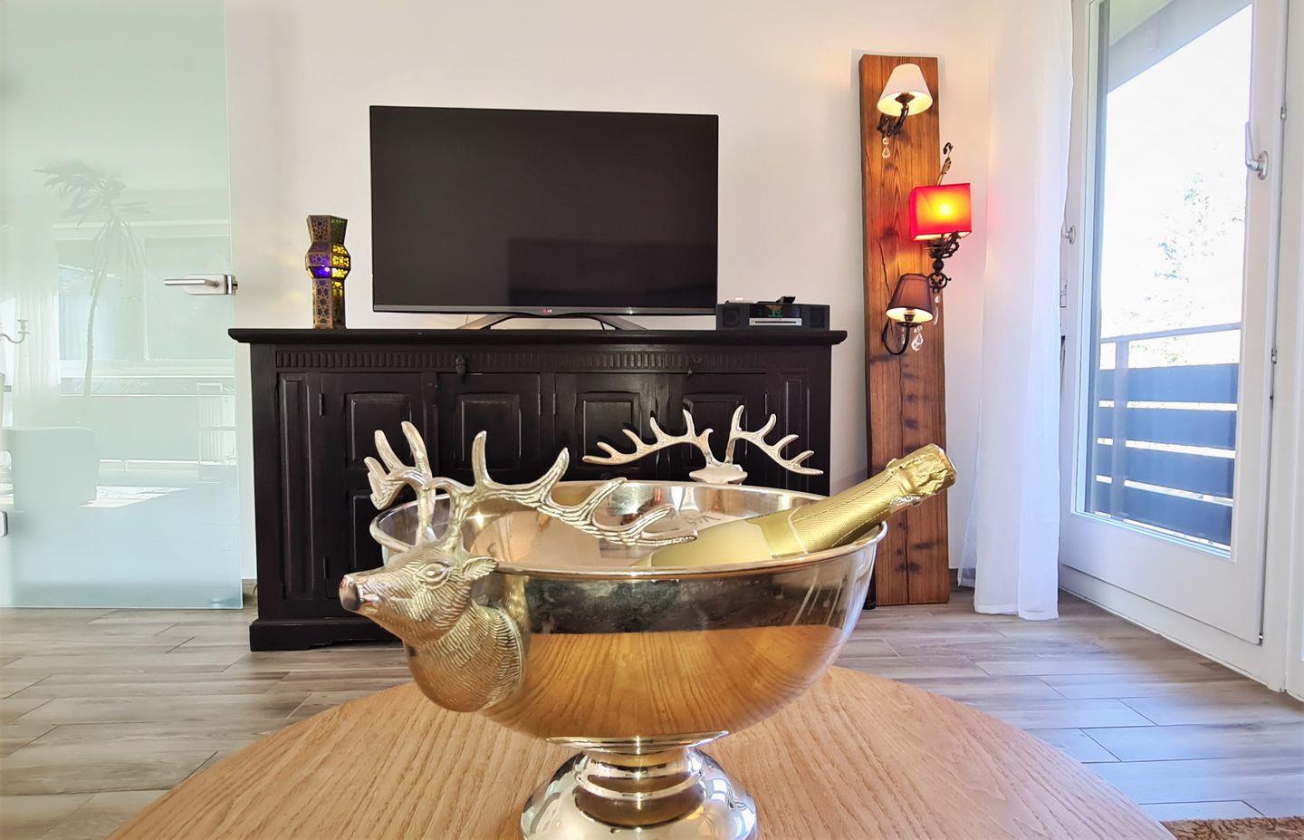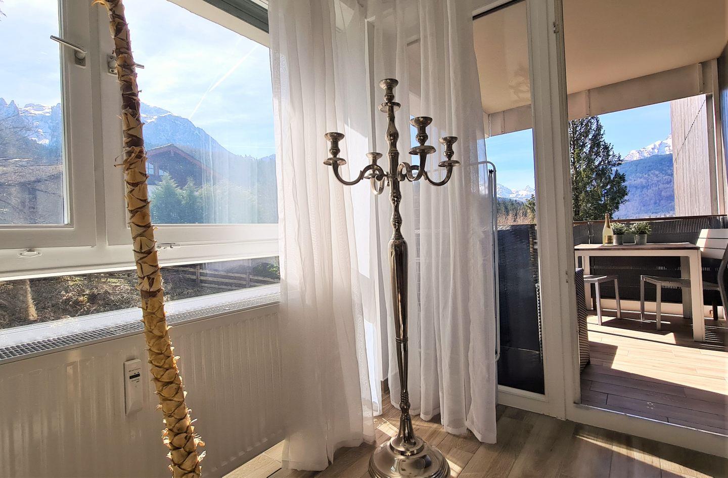 Sofalandschaft bietet Gästen einen idealen Ort, Ruhe und Erholung zu finden.Die Wohnung liegt abseits der Hauptstraße und vom sonnigen Balkon genießt man einen traumhaften Blick auf die Berchtesgadener Bergwelt - der Blick schweift vom Kehlstein über die Schönfeldspitze bis hin zum majestätischen Watzmann.