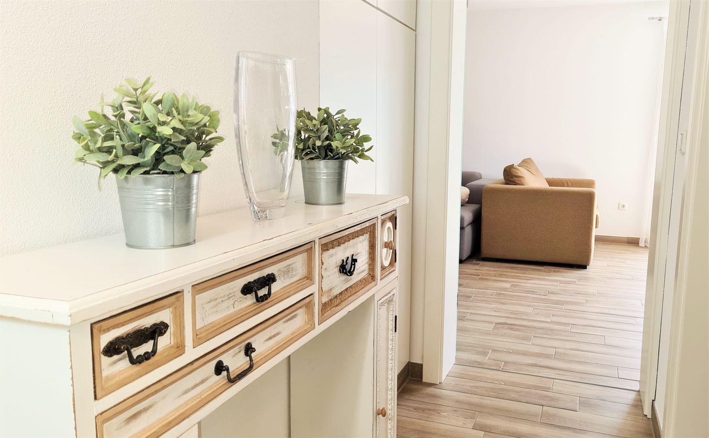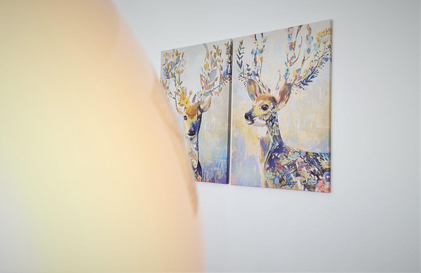 Die hochwertig im Stilmix eingerichtete Ferienwohnung Höhenflug mit einem gemütlichen Schlafzimmer und einem hellen Wohnzimmer mit großzügiger