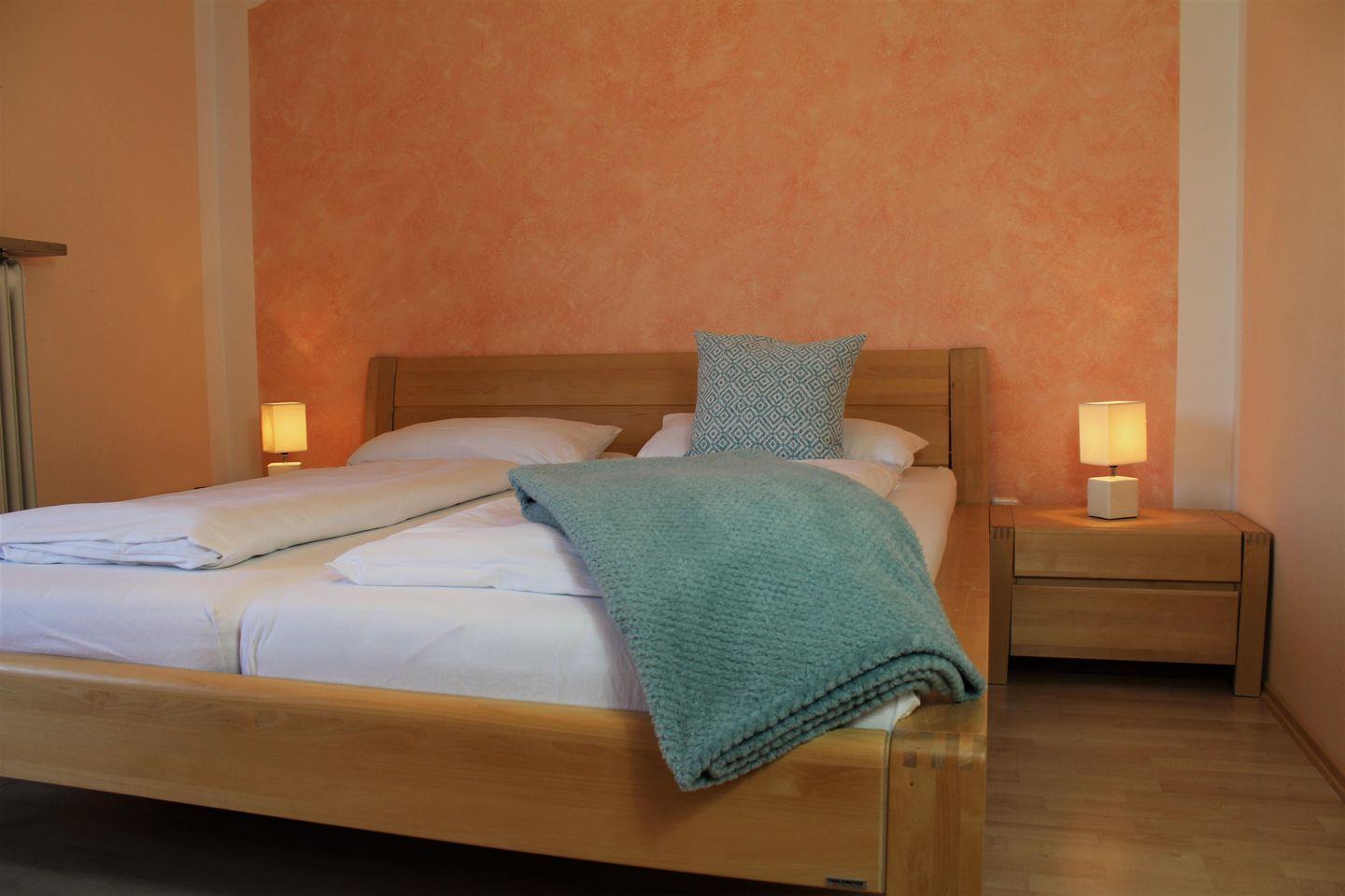 Die Ferienwohnung im 2. Stock (65 m²) bietet Platz für bis zu vier Personen. Die Ferienwohnung erstreckt sich über zwei Schlafzimmer und ein modernes Badezimmer, das mit einer Badewanne ausgestattet ist. Die gut ausgestattete Küche enthält einen Herd mit Ceranfeld, einen Backofen, eine Spülmaschine, einen Kühlschrank mit Gefrierfach, eine Kaffeemaschine und zahlreiche Küchenutensilien. Kostenloses WLAN, Parkplatz und Waschmaschine sind vorhanden.