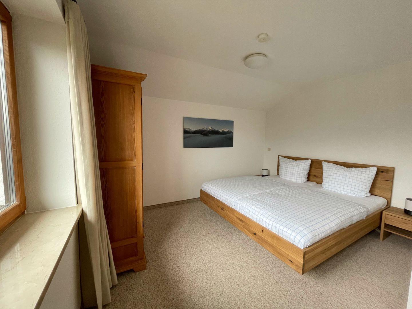 Die Wohnung befindet sich im Dachgeschoss und ist etwa 46 qm groß, verfügt über einen offenen Wohnbereich mit voll ausgestatteter Küchenzeile, ein separates Schlafzimmer sowie Bad/WC. Vom möblierten Balkon haben Sie eine grandiose Aussicht auf die Berchtesgadener Bergwelt. Besonders der Blick auf den Untersberg rundet das Bild dieser gemütlichen Ferienwohnung ab. Die Ferienwohnung liegt in ruhiger Lage am Obersalzberg, jedoch nur fünf Autominuten vom Zentrum entfernt (20 min zu Fuß).