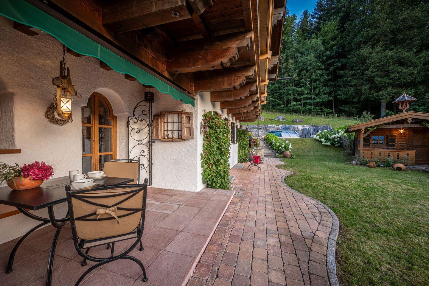 Direkt am Waldrand, wo der Blick sich frei über die majestätischen Berge, einschließlich des markanten Untersbergs, erstreckt, liegt das Ferienhaus „Gipfelstürmer“. In diesem Refugium, das in traditioneller, rustikaler Architektur erbaut wurde, verschmelzen die Natur und der Geist der Region zu einem harmonischen Ganzen.