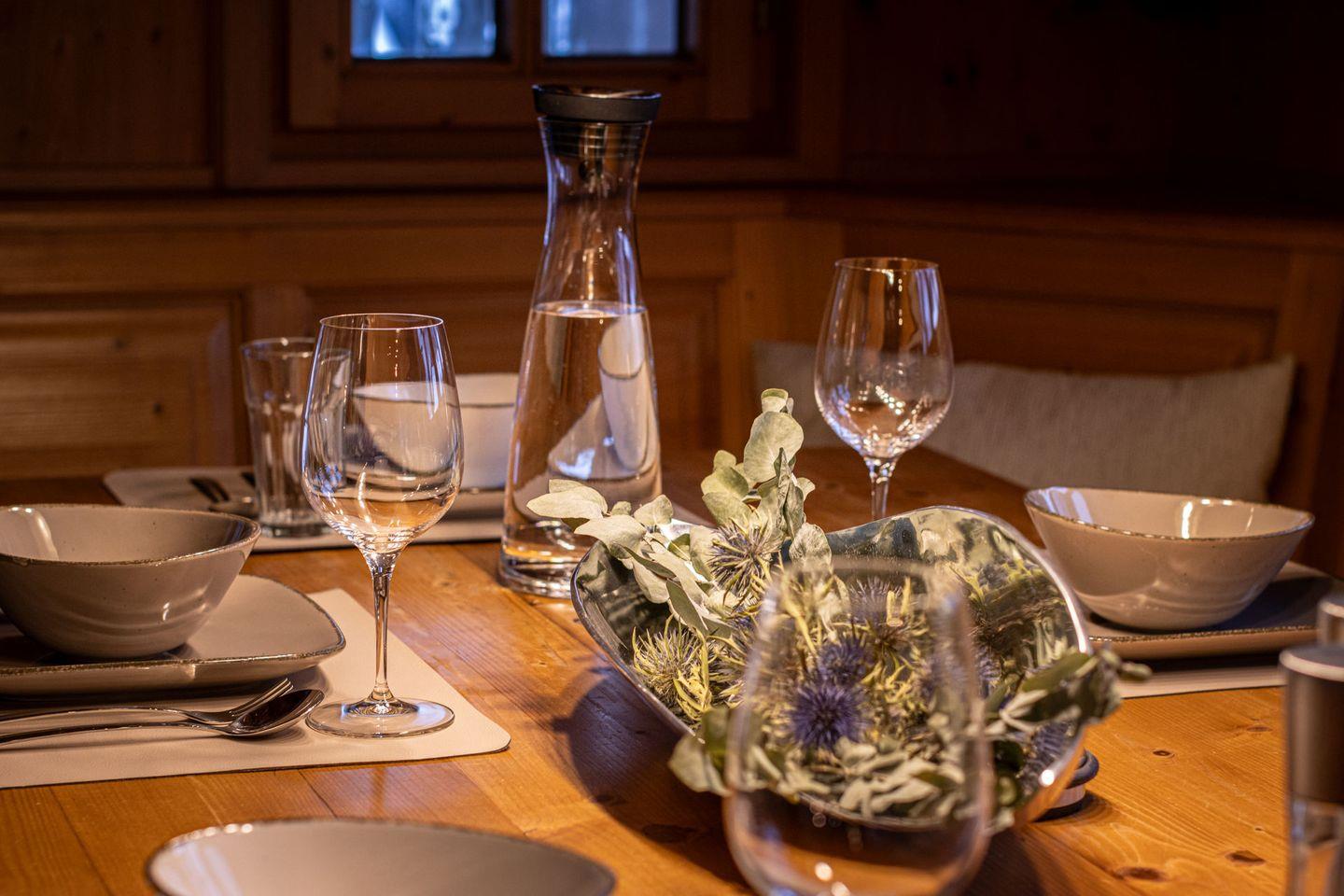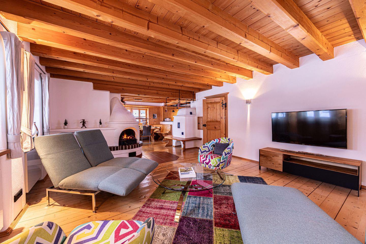Beim Betreten des Hauses, offenbart sich eine hochwertige Einrichtung, die Tradition und Moderne in einem ästhetischen Dialog vereint. Die warmen Holzdielen unter den Füßen und der Sichtdachstuhl über dem Haupt schaffen ein Ambiente von alpiner Eleganz. Die Ausstattung lässt keine Wünsche offen: Eine voll ausgerüstete Küche mit Geschirrspüler und Backofen, ein offener Kamin mit elektrischem Feuer für gemütliche Abende und ein traditioneller Kachelofen, der wohlige Wärme spendet. Die Erholung wird durch eine Sauna mit Ruheraum vervollkommnet, und auch an praktische Bedürfnisse wurde mit einer geräumigen Garage für zwei PKWs und einer vollausgestatteten Waschküche gedacht.
