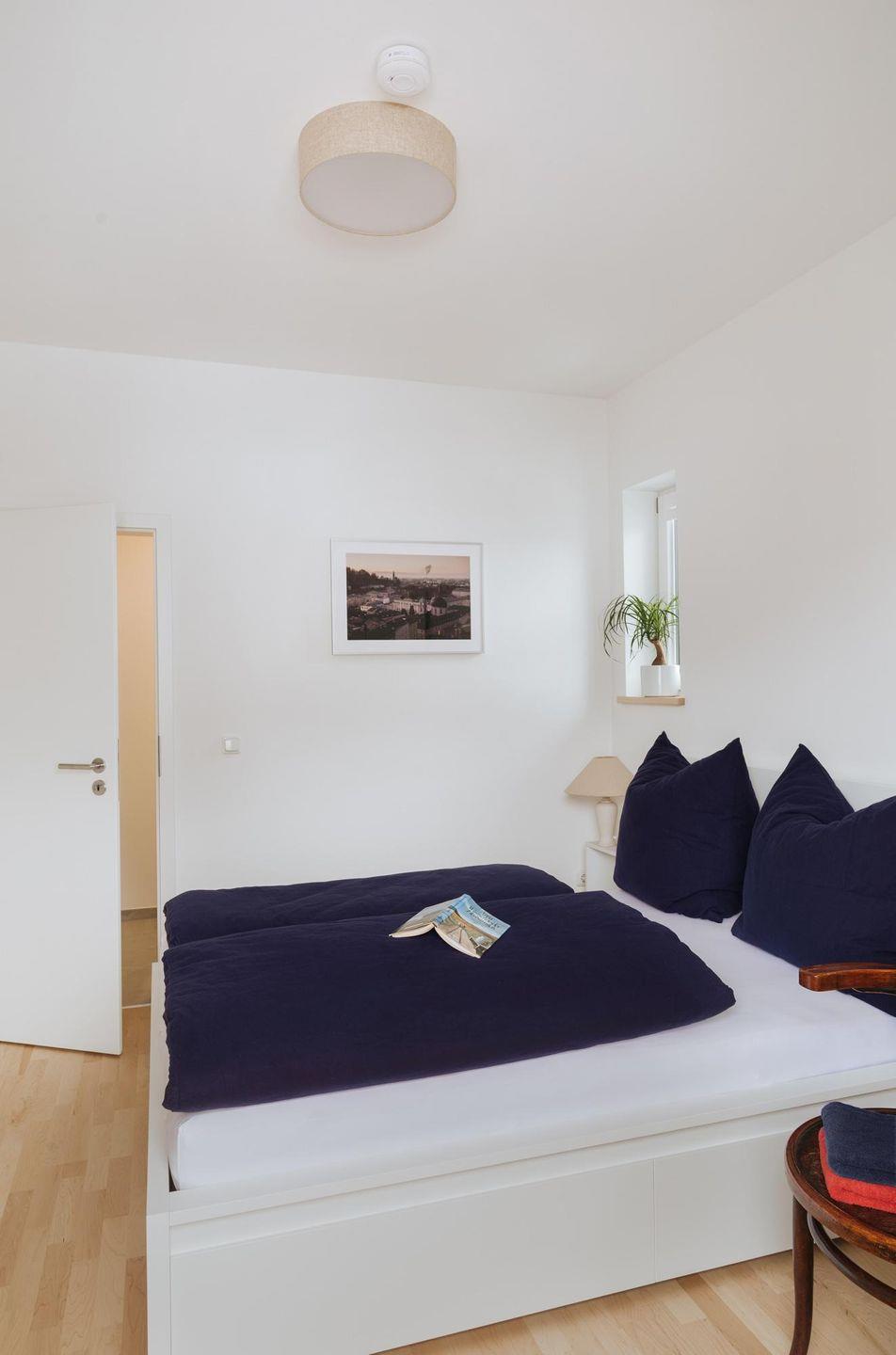Zwei Schlafzimmer mit komfortablen Doppelbetten mit den Maßen 180x200 und 140x200 schenken Ihnen erholsame Nächte. Besonders schön: Von einem der beiden Zimmern gelangen Sie direkt auf die West-Terrasse, wo Sie die Abendsonne genießen können.