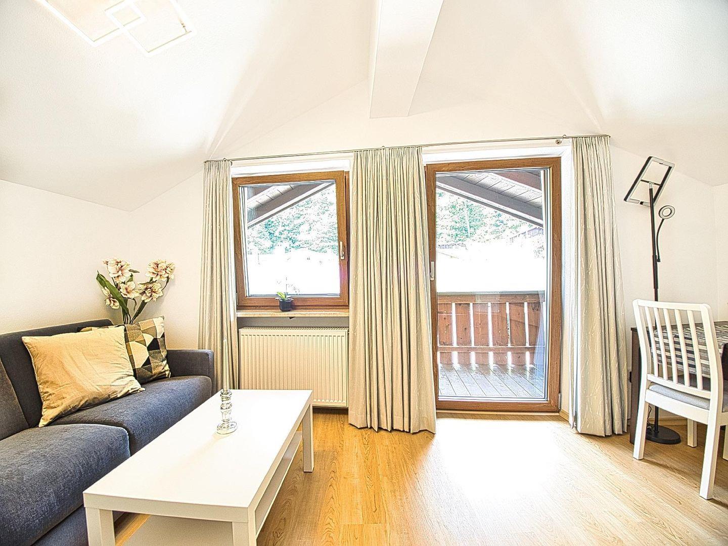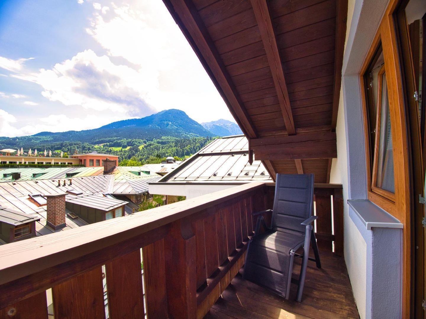 Die Ferienwohnung Kehlsteinblick befindet sich im Dachgeschoss eines Hauses in einer Seitenstraße – direkt beim historischen Markt von Berchtesgaden.