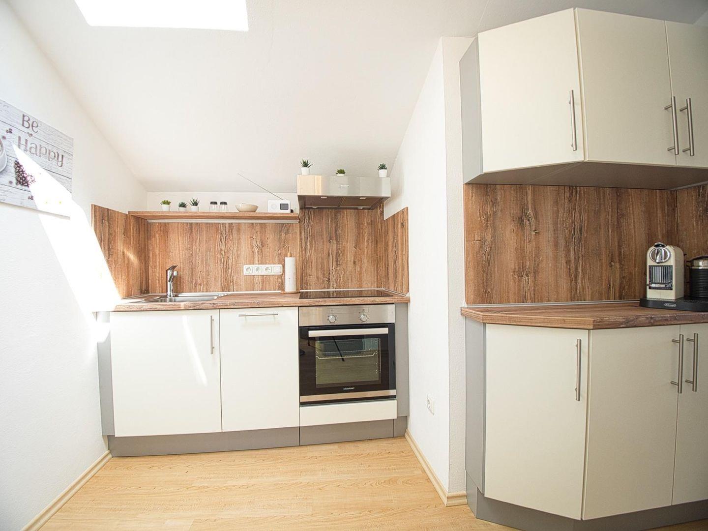 Die offen gestaltete Küche ist vollständig ausgestattet und bietet alles, was Sie für gemeinsame Kochmomente brauchen. Der angrenzende Essbereich schafft eine wohnliche Atmosphäre für gesellige Abende.