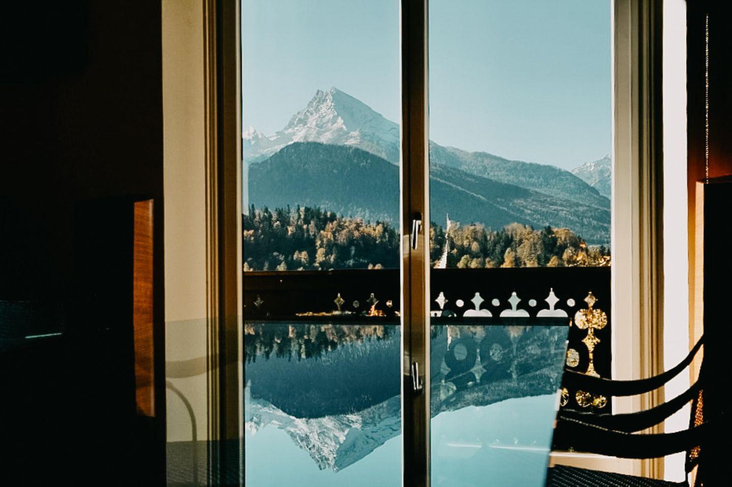 Fenster geben den Blick auf die Berchtesgadener Alpen frei. Licht, Landschaft