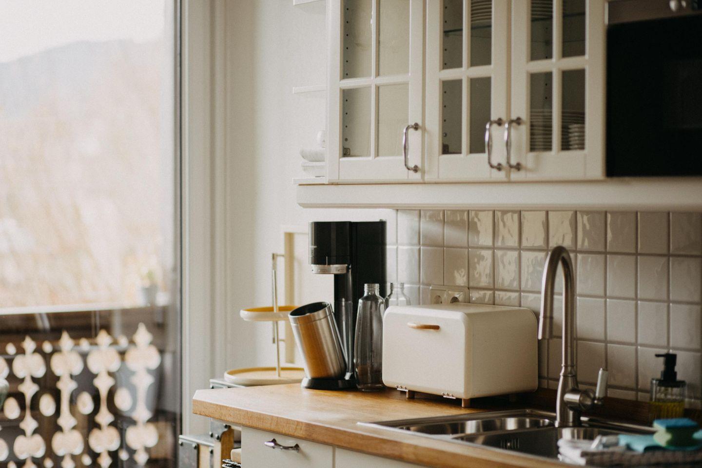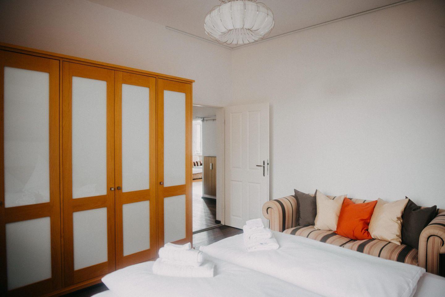 Das Wohnzimmer mit antikem Kronleuchter ist das Herz der Wohnung. Zwei