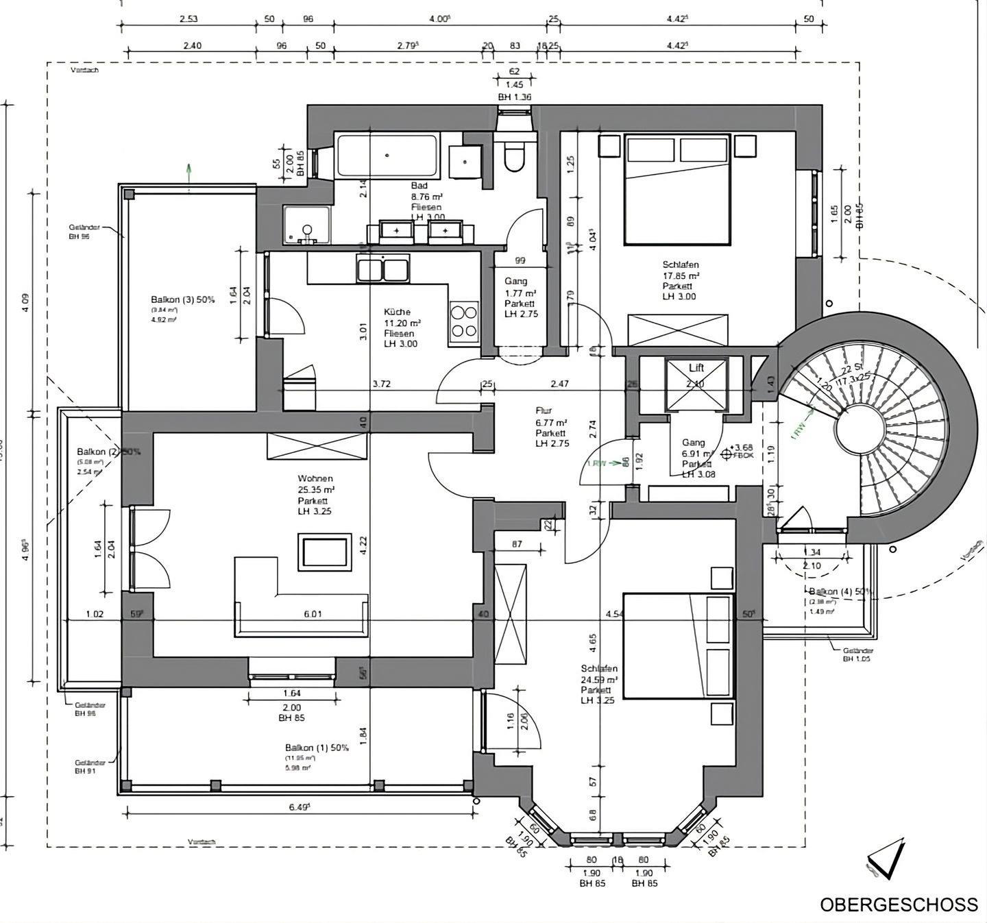 Jahr 1899. Ein Aufzug ist vorhanden. Hohe Stuckdecken, Holzfußböden, ausgesuchte