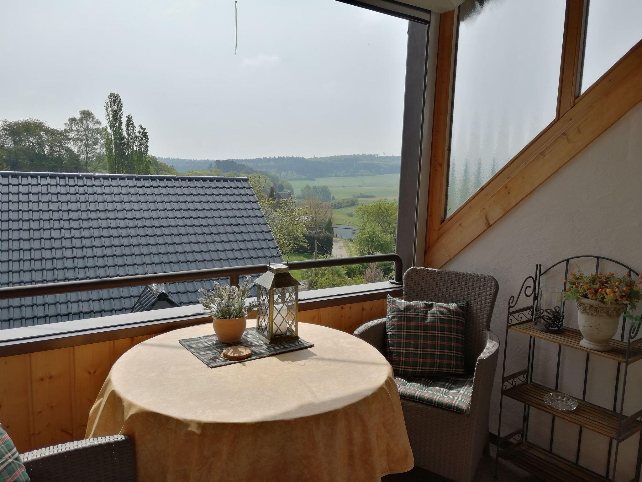 The outdoor area of the holiday flat with its balcony offers a wonderful view of the surrounding nature. There are parking spaces directly on the property next to the house, so you can arrive comfortably and carefree. The entire surrounding area invites you to start walks or longer hikes through the picturesque landscape of the Vulkaneifel directly from the house.