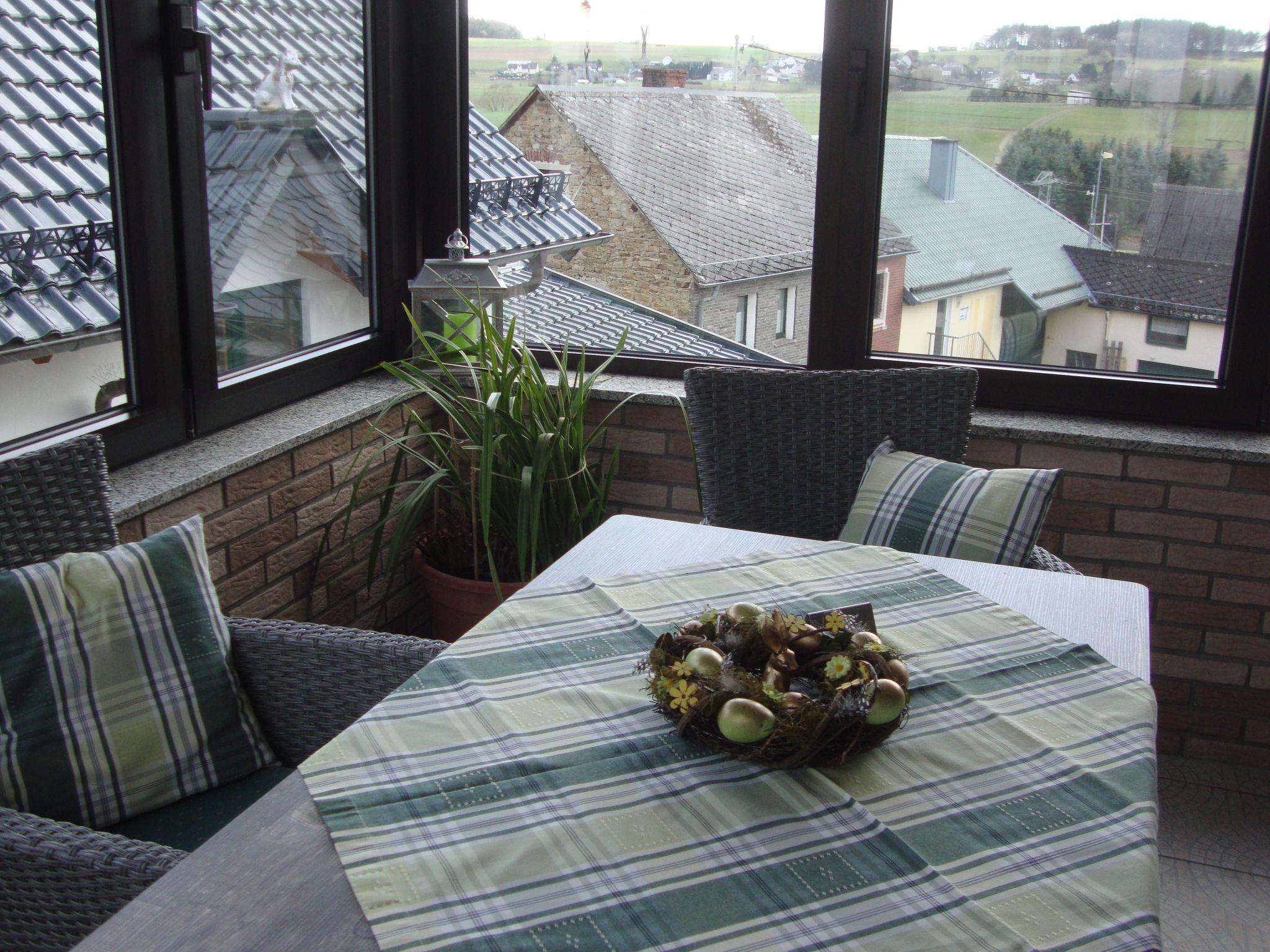 From the conservatory you can enjoy the marvellous view of the Eifel landscape. You can also linger here when the sun doesn't want to shine. On the courtyard terrace you can switch off and relax in the shade of the vine foliage. If you would like to travel with friends or family, a separate top renovated double room with new furniture, small seating area and bathroom (shower and WC) can be rented for a third and fourth person in the same house.