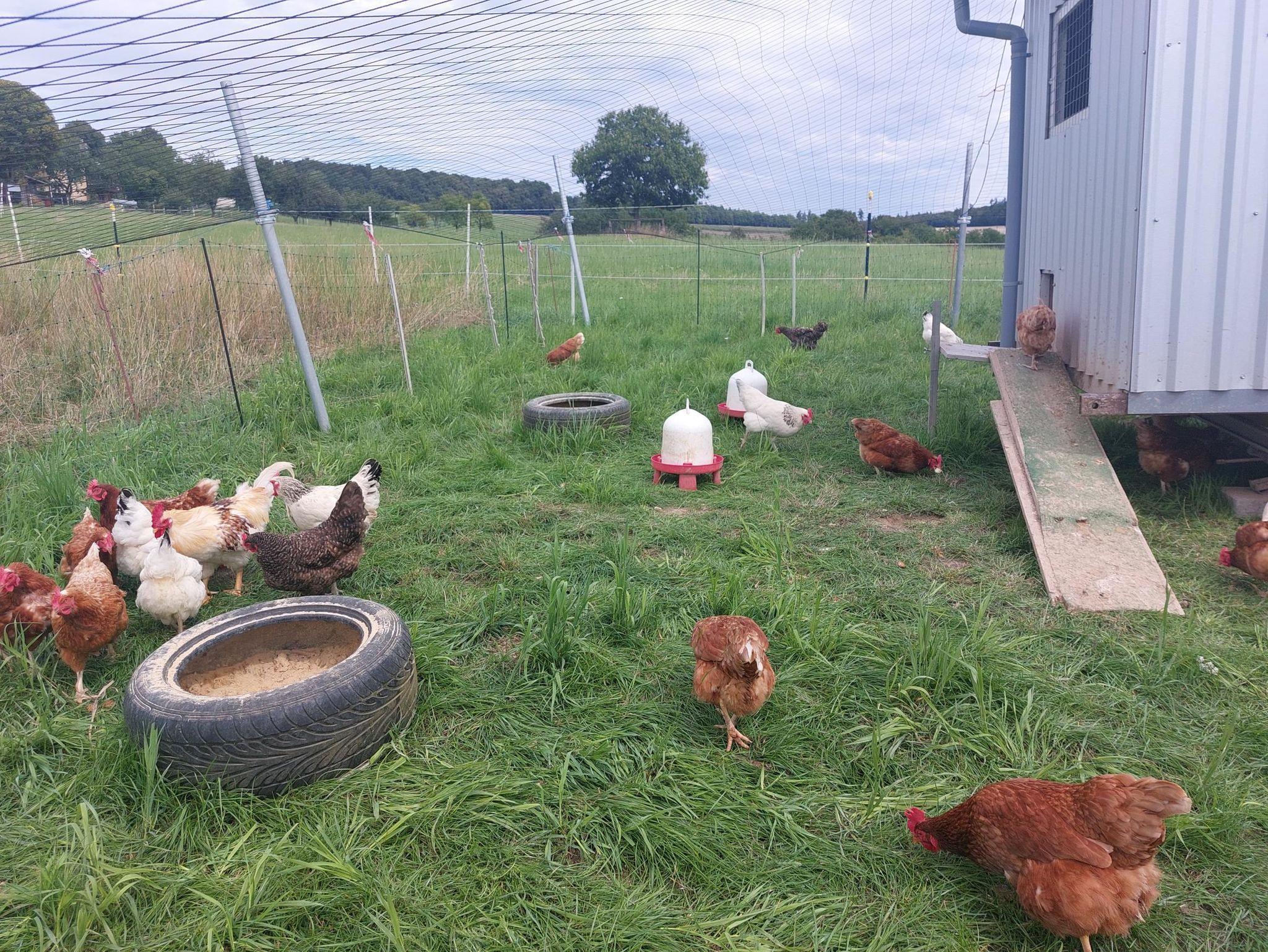 Auf unserem Hof leben Ponies, Schafe und Hühner. Frische Eier kann man direkt auf dem Hof erwerben.