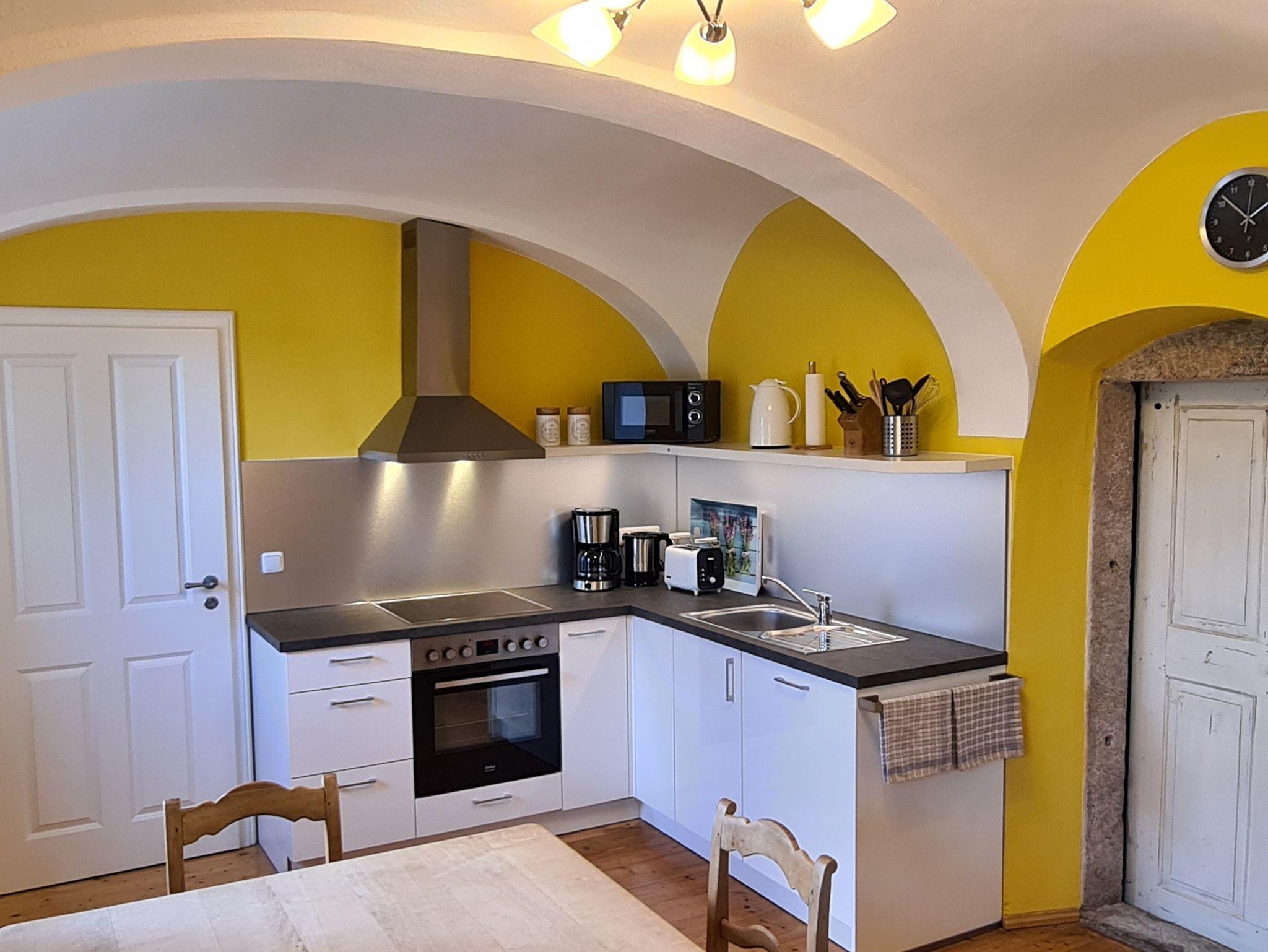 Ausstattung Küche: Wasserkocher, Toaster, Kaffeemaschine, Kühlschrank mit Gefrierfach, Herd, Backofen, Geschirrspüler, Mikrowelle, Geschirr, Töpfe, Besteck, Geschirrtücher, Handtücher und Bettwäsche inklusive.