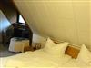 Kleines Doppelzimmer (15 m²) mit Gemeinschaftsdusche und -WC im Obergeschoss des Einfamilienhauses.