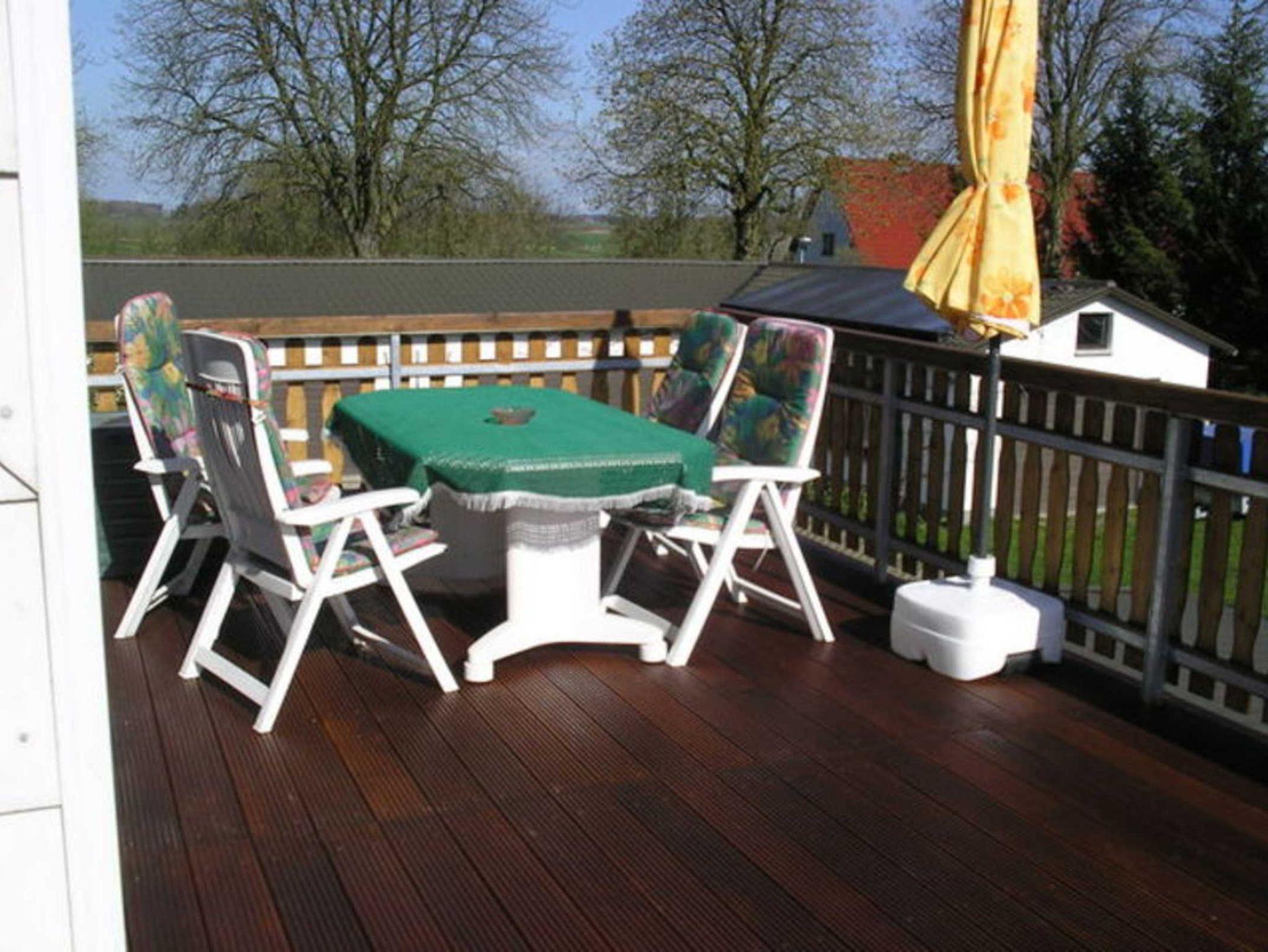 die Fewo liegt in der 1-Etage, Ausstattung: SZ mit Doppelbett, WZ mit Eckcouch und Schlaffunktion, Gartenplatz möbliert, Sat-TV, Telefon mit ISDN, Stereoanlage,DVD- Player, Kochnische mit Kühlschrank, 2-E-Platten, Kaffeemaschine, Toaster, DU/WC, Fön
