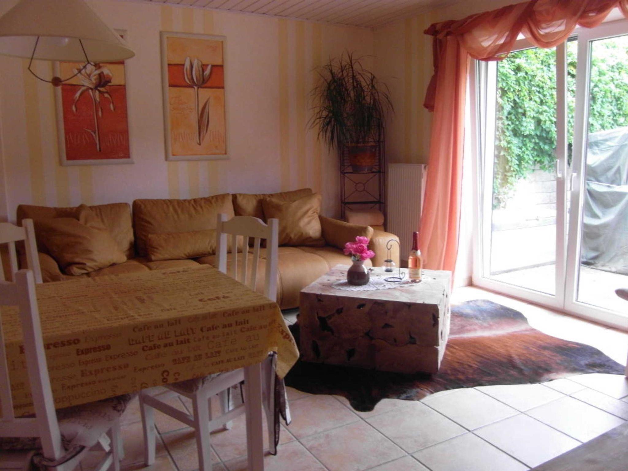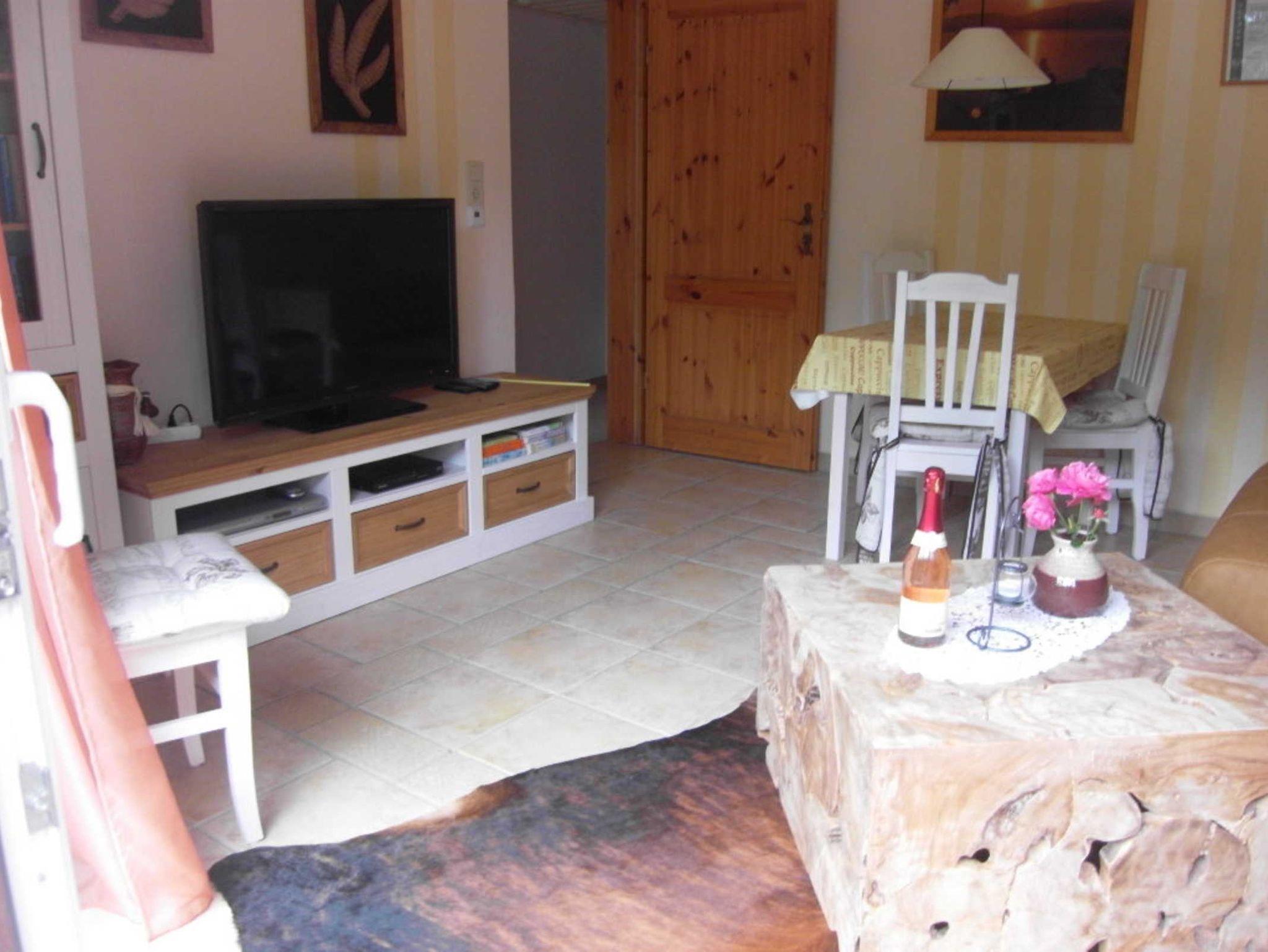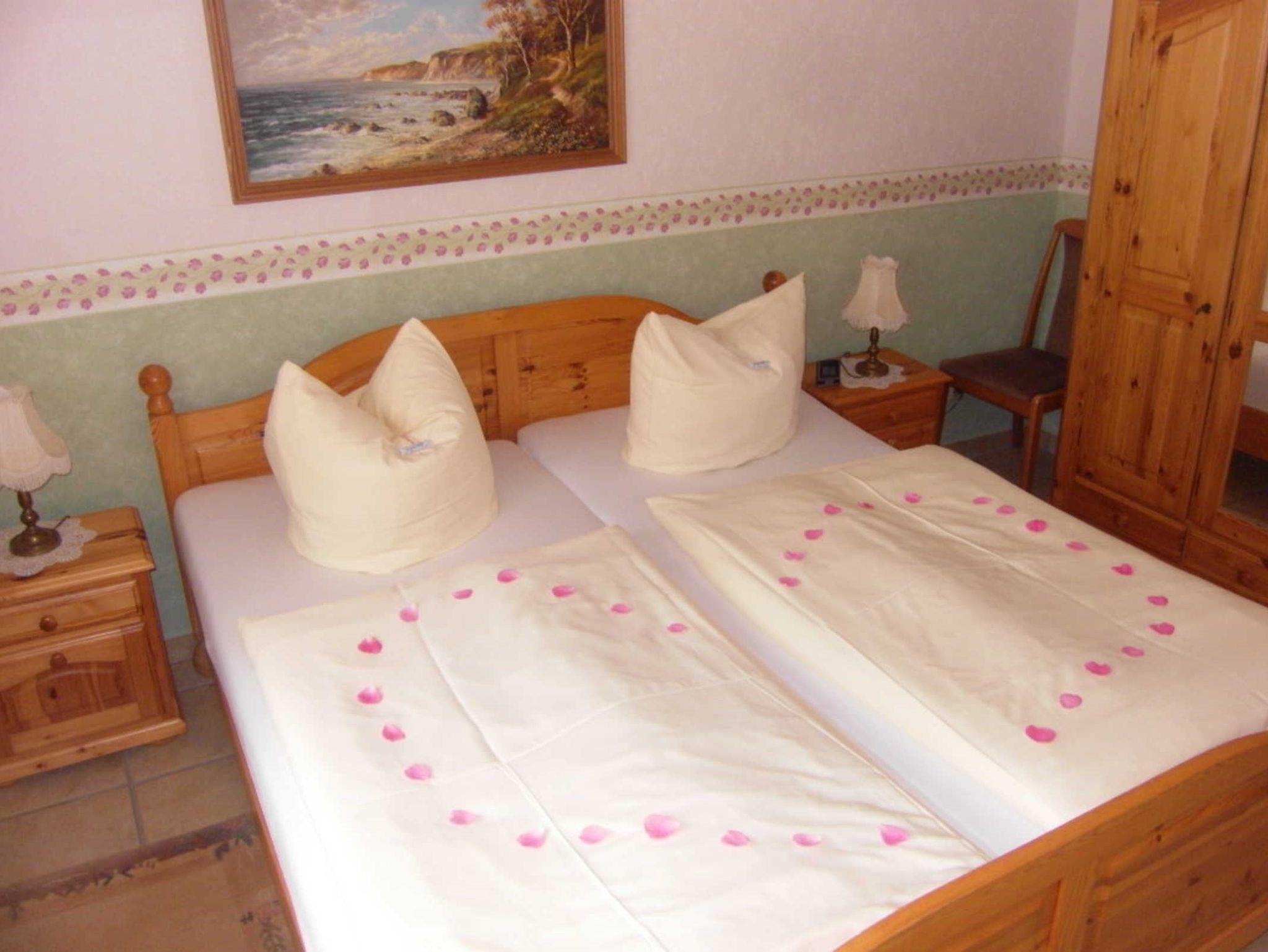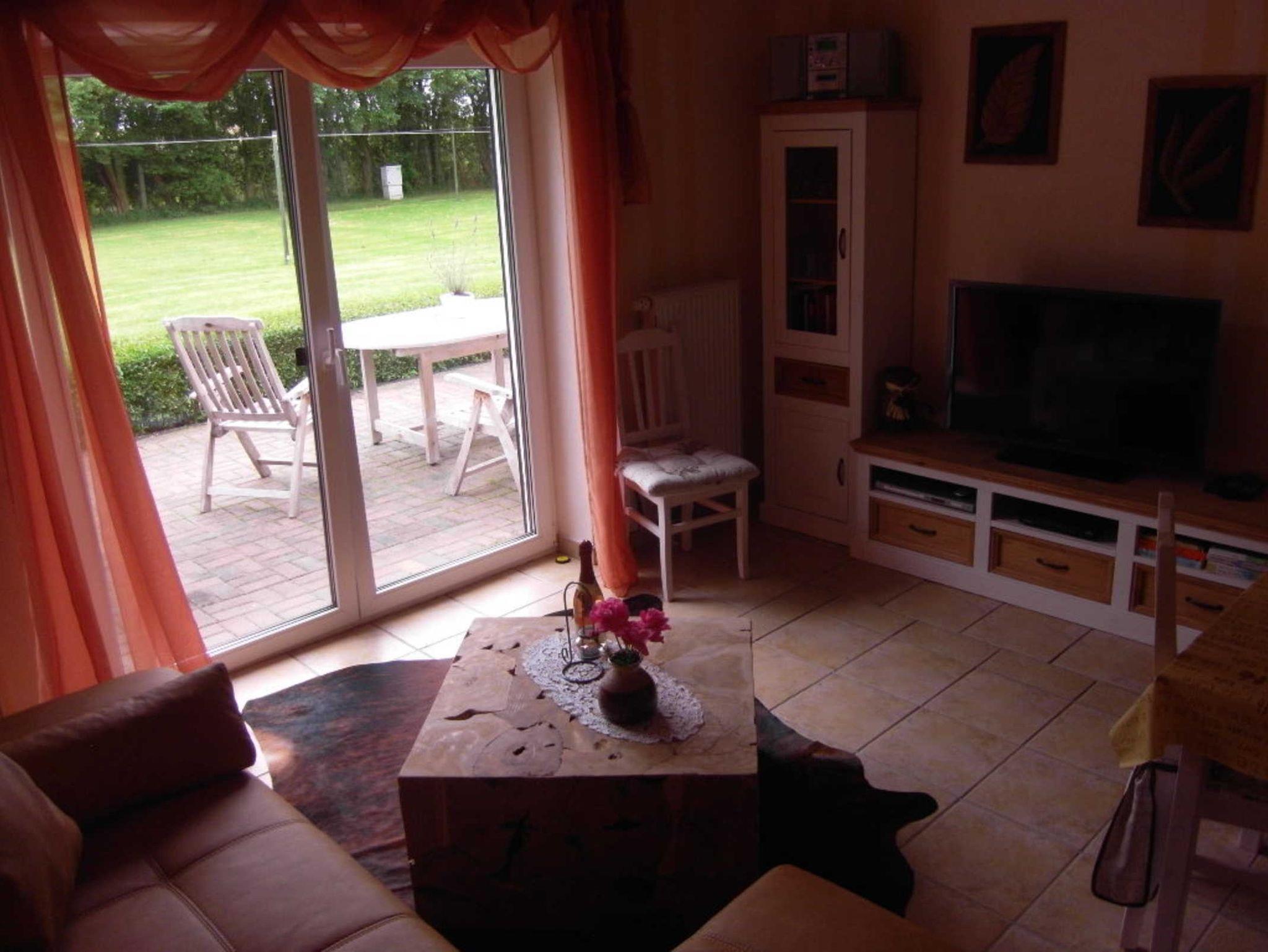 Schlafzimmer im Landhausstil mit Doppelbett, verstellbare Lattenrosteund neuen Taschenfederkernmatratzen, WZ mit Sitz-Schlafgarnitur,Essplatz,alle Böden gefliest,alle Fenster mit Außenrollos, Zugang zur eigenen möblierten Terrasse, dig. TV, DVD, Telefon, WLAN- neu mit sorglosinternet zum Unkostenbeitrag von 5,00 €/ Aufenthalt, sep.Komplettküche mit Geschirrspüler,E-Herd, Mikrowelle usw. Bad mit großem Waschplatz, Dusche, WC,voll gefliest mit Fenster