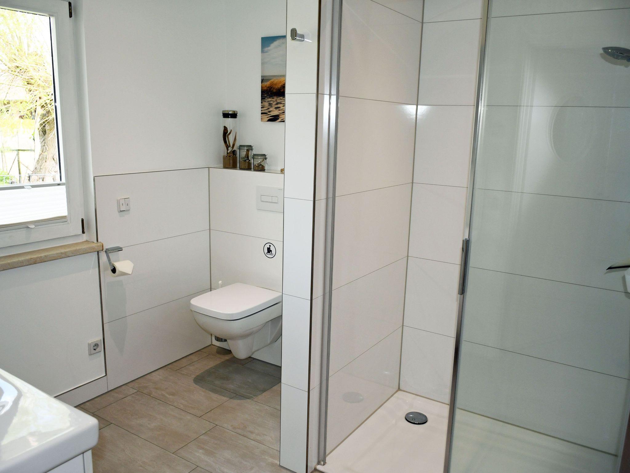 o ein geräumigen Wellnessbad mit großer Dusche und kleiner finnischer Sauna für 2 Personen