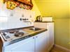 • separate Küche mit Esstisch, Kaffeemaschine, Toaster, Mikrowelle, Kühlschrank und 2-Platten-Kochgelegenheit