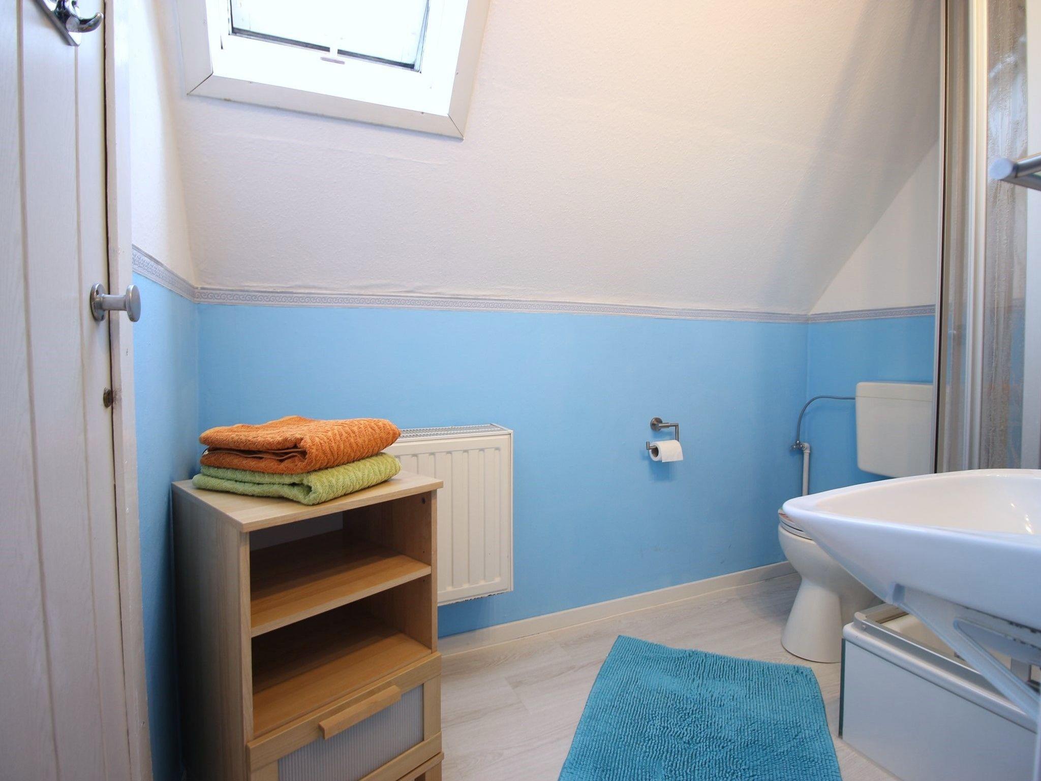 • Bad mit Dusche und WC sowie Dachfenster, Vinylboden