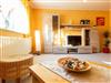 • kombiniertes Wohn-/Schlafzimmer mit Doppelbett, Sitzecke und TV