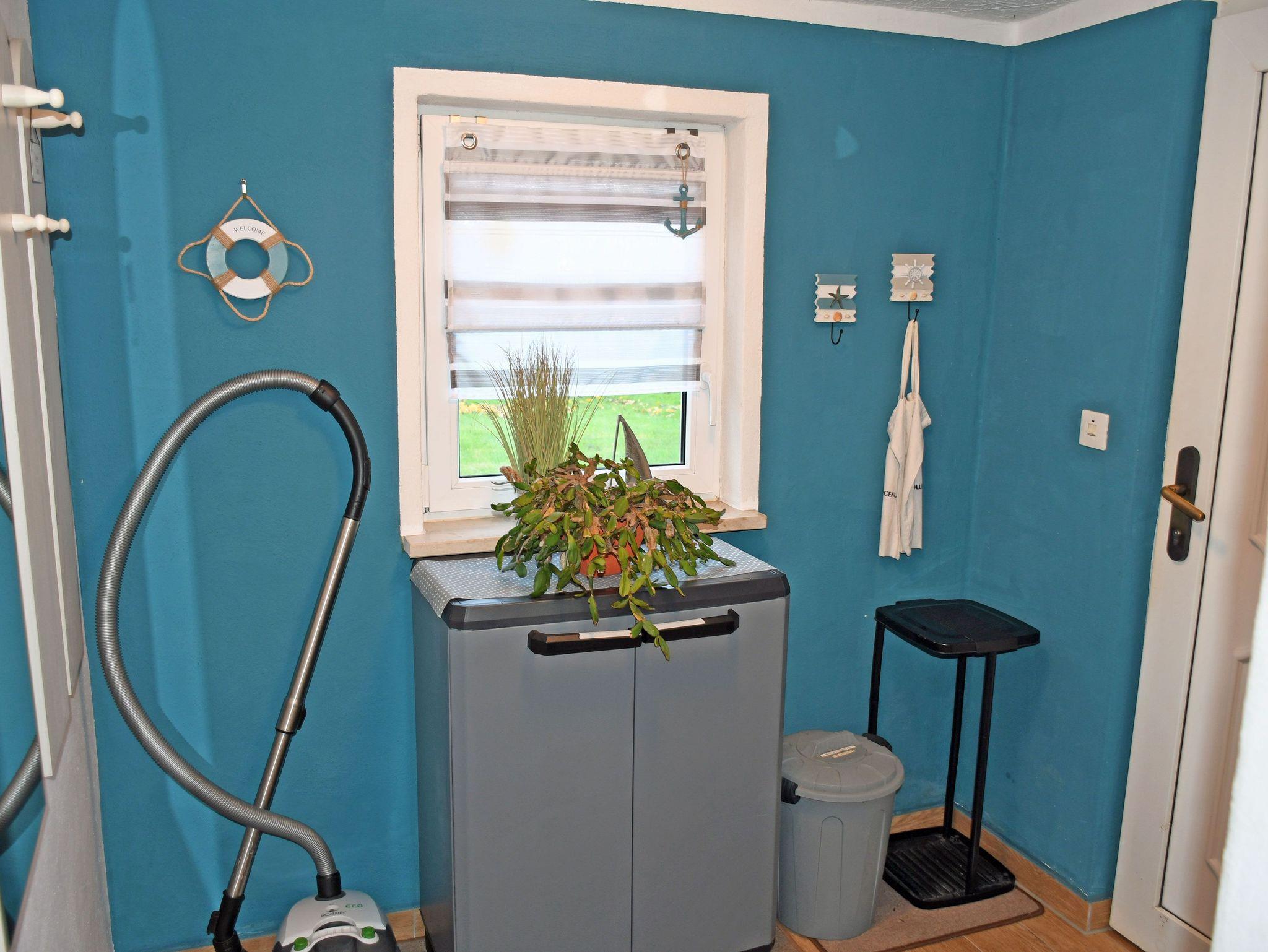 Das Ferienhaus befindet sich separat auf unserem weitläufigen Grundstück. Es ist ca. 40 qm groß, bietet Platz für maximal 2 Erwachsene und 2 Kinder (bis 12 Jahre) und wurde modern und liebevoll eingerichtet. Das Haus ist sowohl mit Fliesen als auch mit Teppichboden ausgestattet. Im Wohnraum befinden sich eine bequeme Sitzcouch (kann als Schlafcouch aufgebettet werden) mit Tisch und ein Radio und ein TV-Gerät mit DVD-Player. Hier steht auch ein großer Esstisch mit Stühlen. Bei Bedarf kann der Kamin angeheizt werden, der für Wärme und Behaglichkeit am Abend sorgt. Die Kosten für das Kaminholz sind selbst zu tragen.