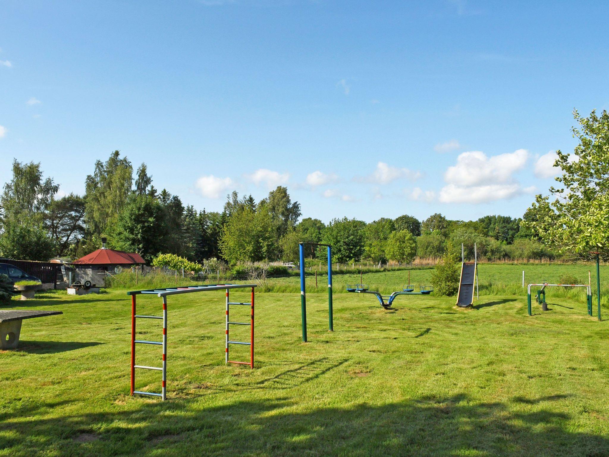 Das von einer Wiese umgebene Ferienhaus wurde modern und liebevoll eingerichtet, es verfügt auch über einen kleinen Kamin und eine schöne, überdachte Terrasse mit Gartenmöbeln und Grillmöglichkeit. Zum Objekt, das sehr viel Platz für Familien mit Kindern bietet, gehören auch ein Spielplatz und eine Liegewiese zum Sonnen.