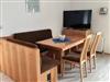 Die Ferienwohnung hat einen separaten Eingang. Dieser ist über eine Außentreppe zu erreichen. Die FeWo ist 43 m² groß und hat ein separates Schlafzimmer mit einem Doppelbett und einer ausziehbaren Schlafcouch. An den Fenstern befinden sich Rollläden. Im großen Wohn-/Essraum befindet sich ein Fernseher, Geschirrspüler, Ceran-Kochfeld, Backofen, Kühlschrank mit Gefrierfach und eine Essecke für 5 Personen. Im Bad befindet sich eine große Dusche. Natürlich ist eine kostenlose W-LAN Nutzung möglich.