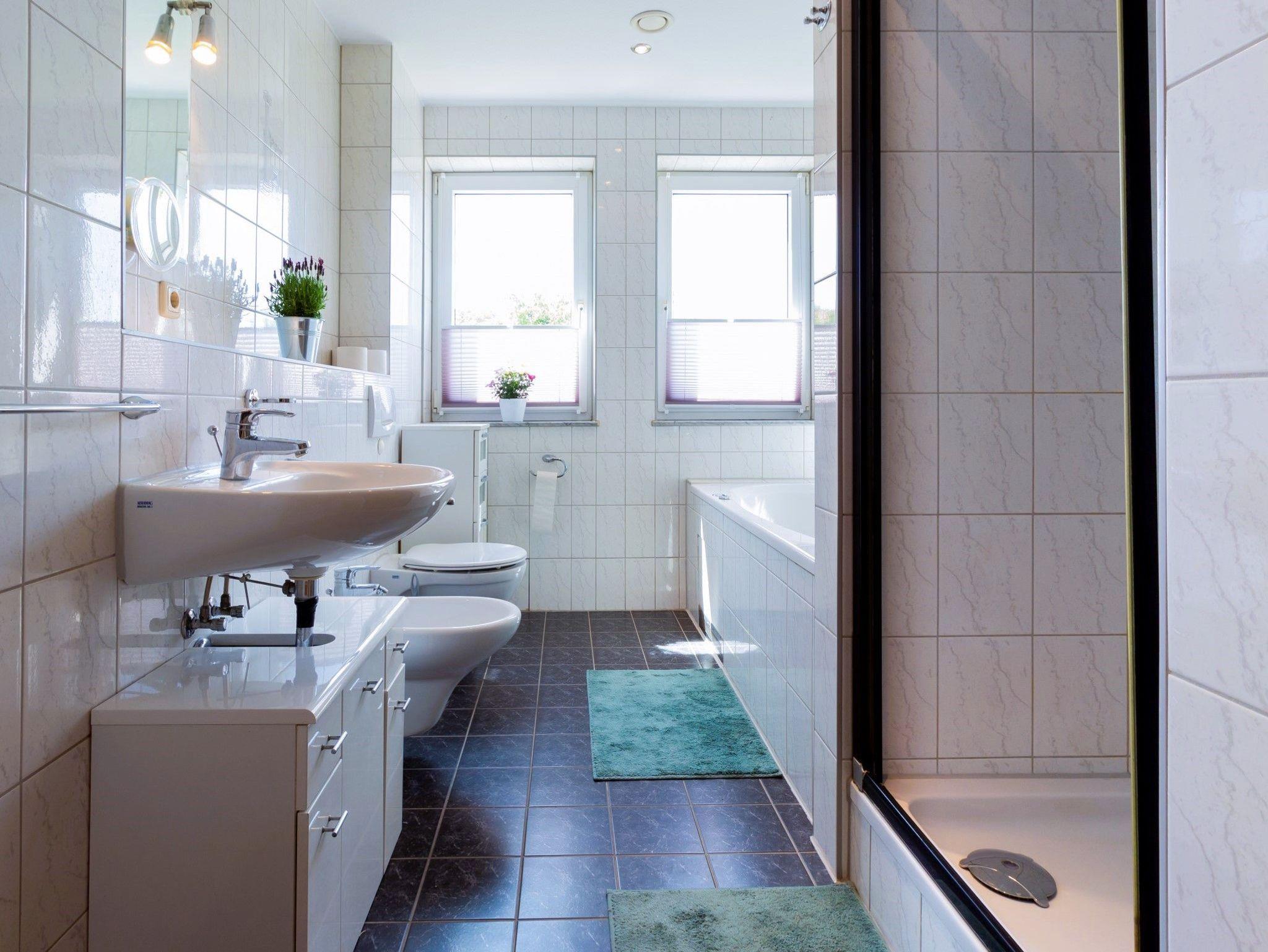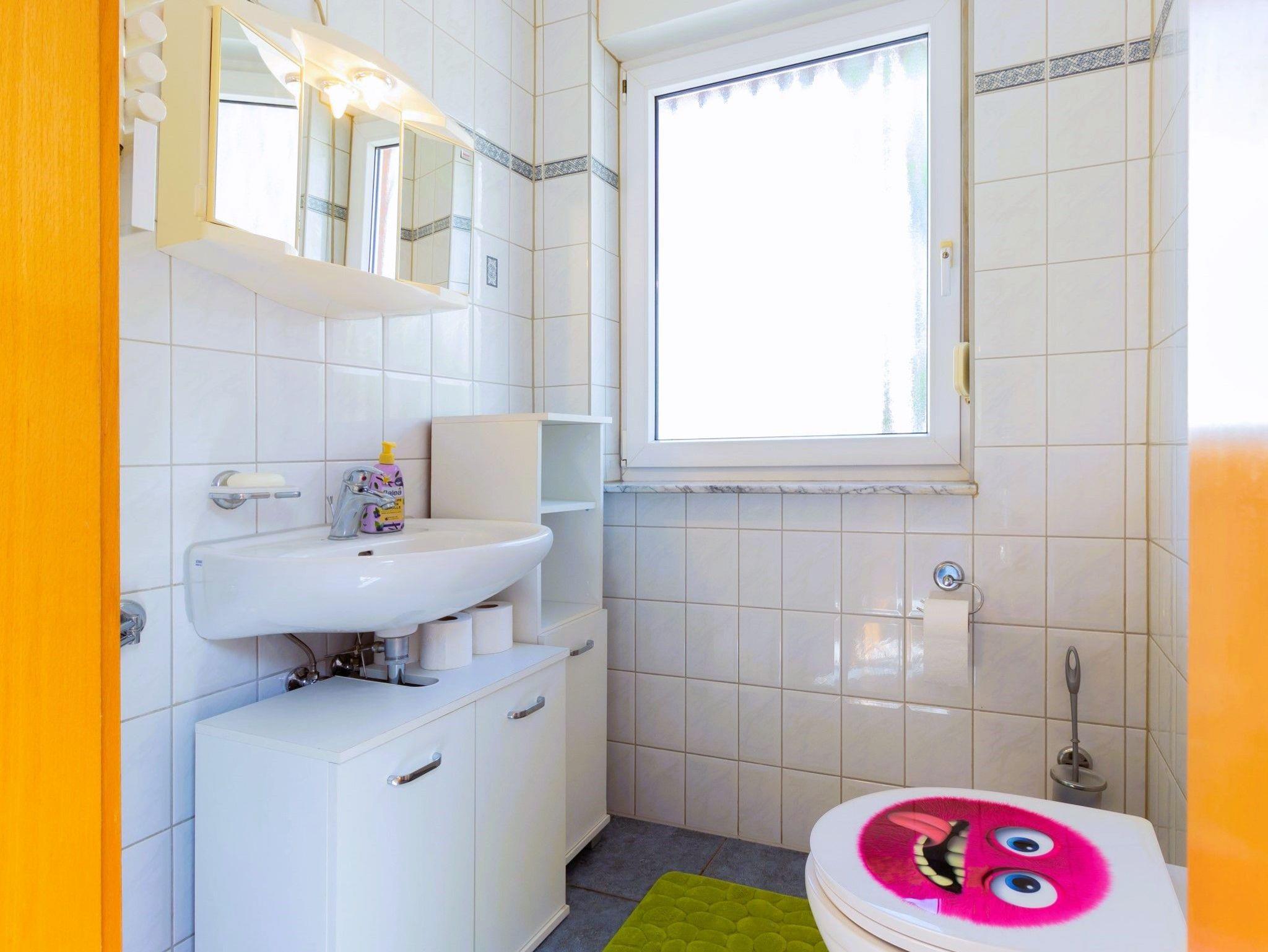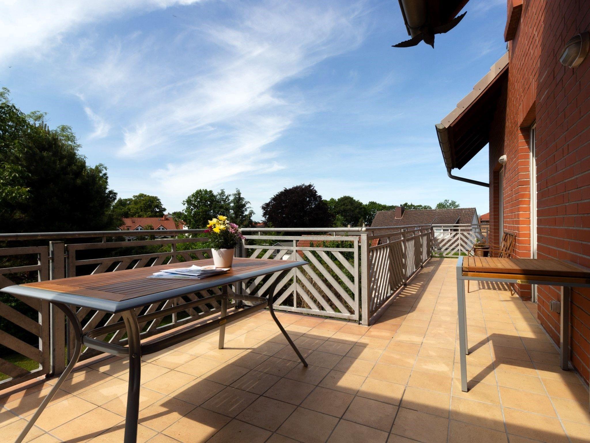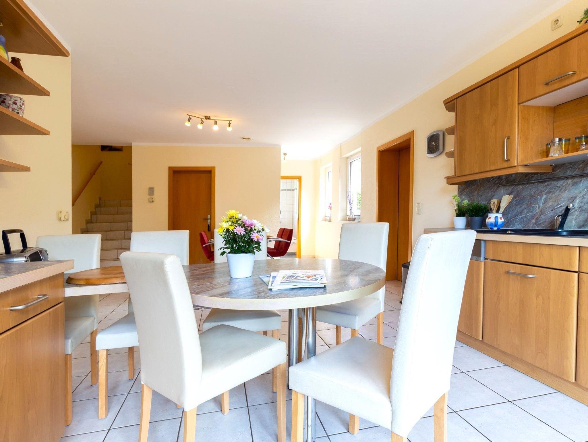 Die Wohnung bietet ein großes Wohnzimmer und eine vollausgestattete Küche sowie eine Gästetoilette in der ersten Etage. Von der Küche und vom Wohnzimmer hat man Zugang zum Südbalkon. In der zweiten Etage befinden ein Wohn- und Schlafbereich mit Zugang zur riesigen Terrasse. Des Weiteren befinden sich dort das Vollbad mit Dusche und Badewanne sowie drei Schlafzimmer mit insgesamt vier Einzelbetten und einem Doppelbett (160 x 200cm). Die Terrasse sowie der riesige Balkon sind Richtung Süden ausgerichtet und bieten einen sonnigen und grünen Blick bis über die anderen Häuser hinweg. Sie laden zum Verweilen beim Sonnenuntergang ein. Ein Garagenstellplatz mit direktem Zugang zur Wohnung und ein zusätzlicher PKW-Stellplatz sind auf dem Grundstück vorhanden.