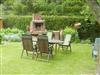 Im Garten steht eine Sitzgruppe und ein Grill zur Verfügung.