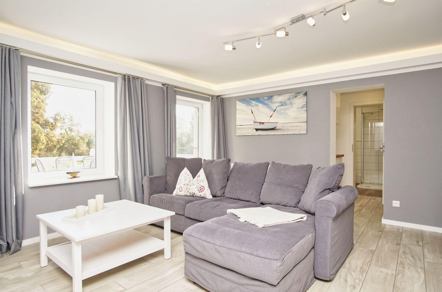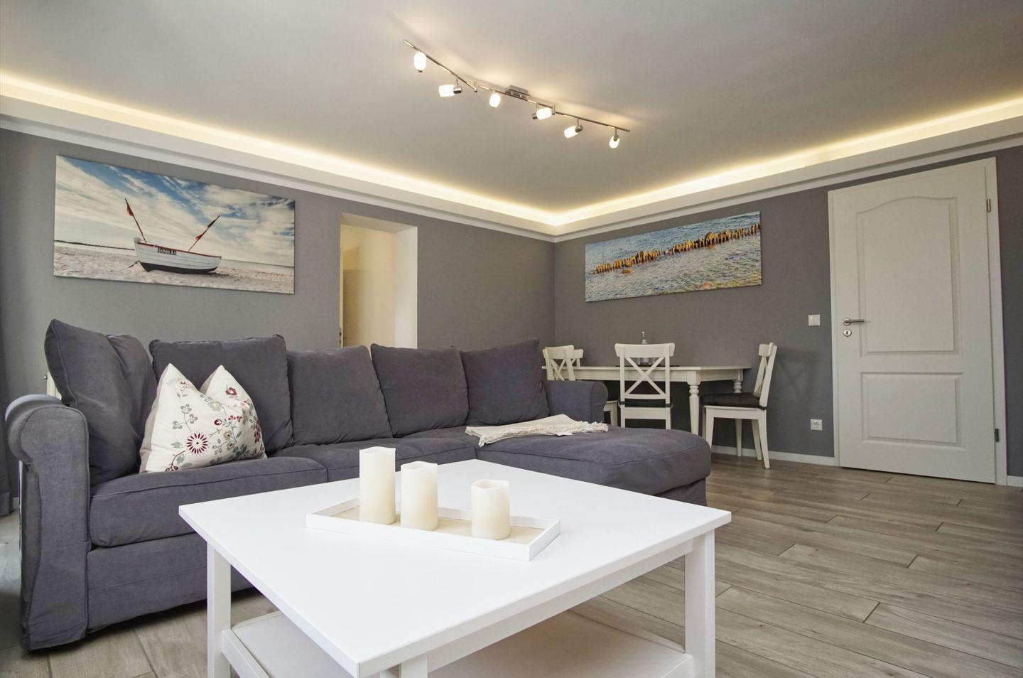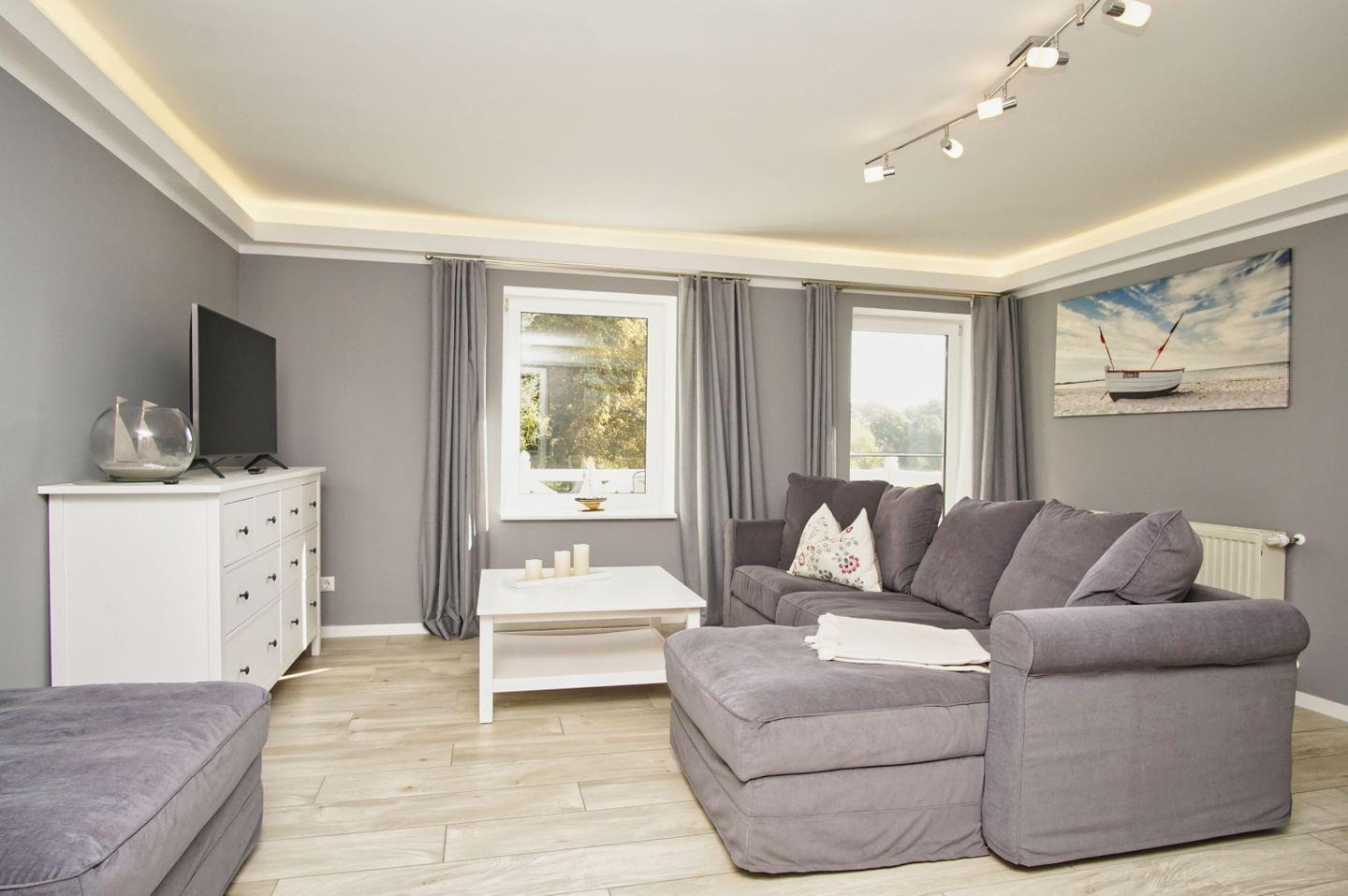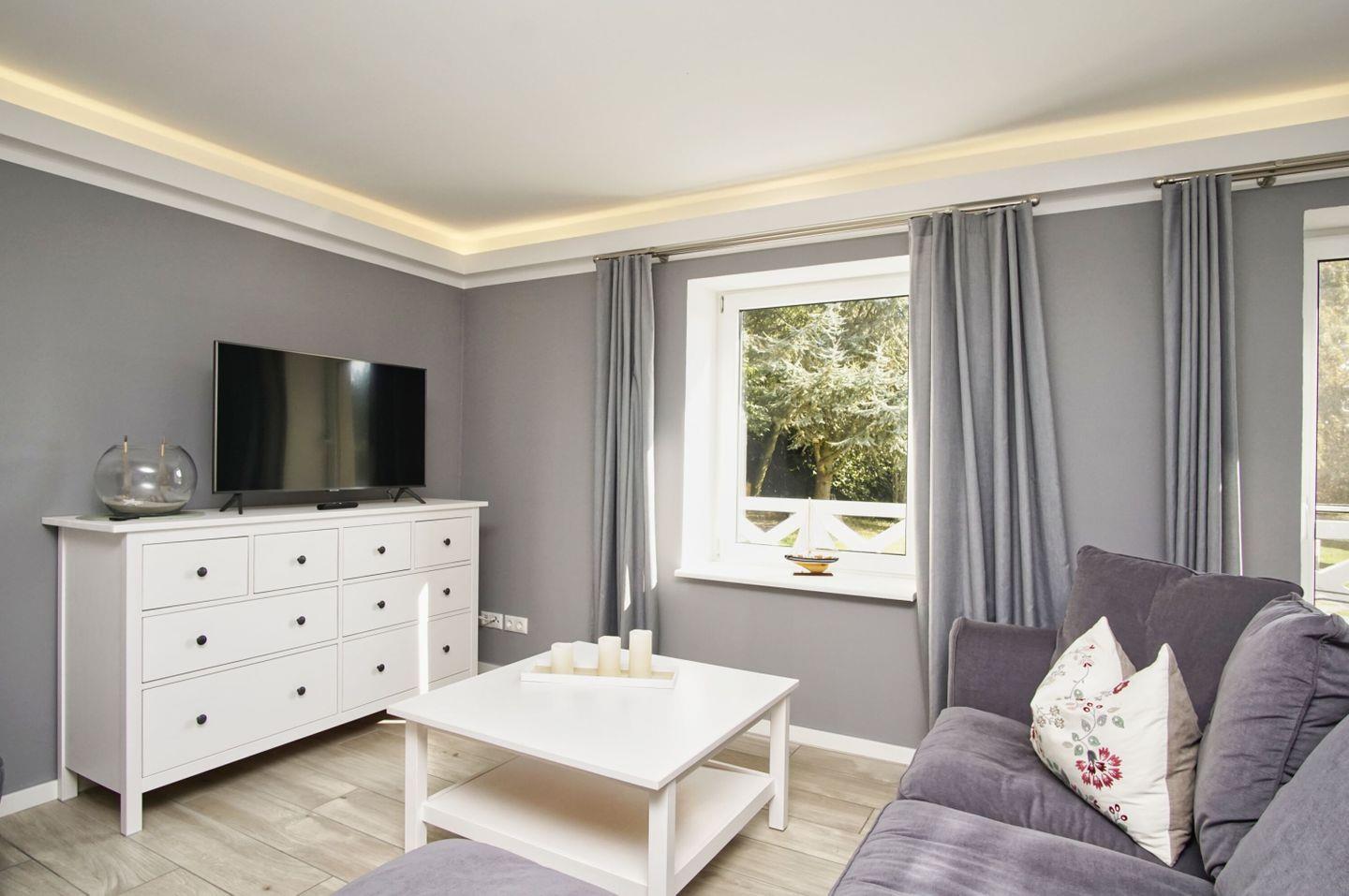 WOHNEN // Wohnraum mit bequemer Couch, Flachbild-TV, Essbereich ++
