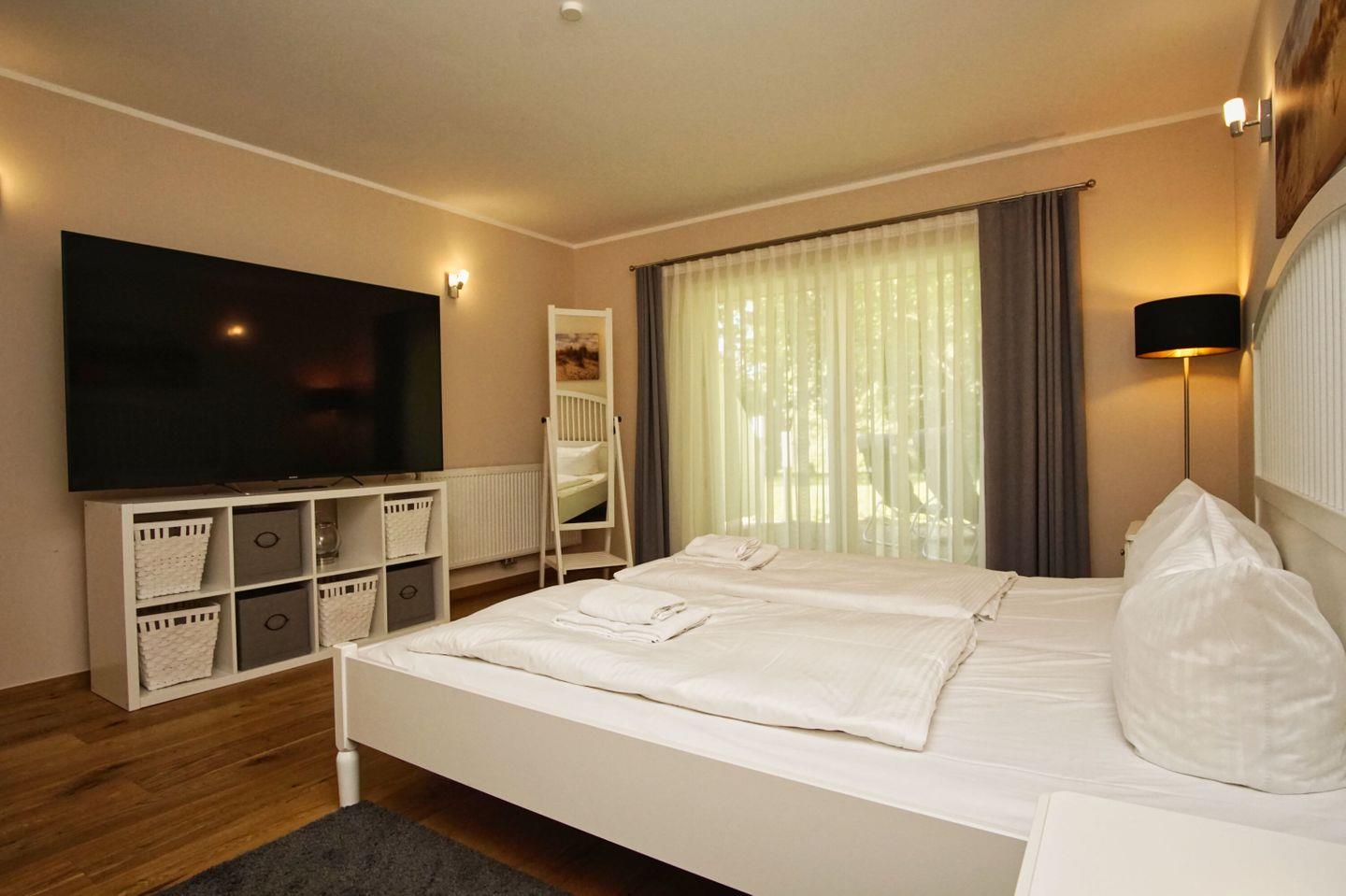 SCHLAFEN // Schlafzimmer mit bequemem Doppelbett, Terrassenzugang und Flachbild-TV ++