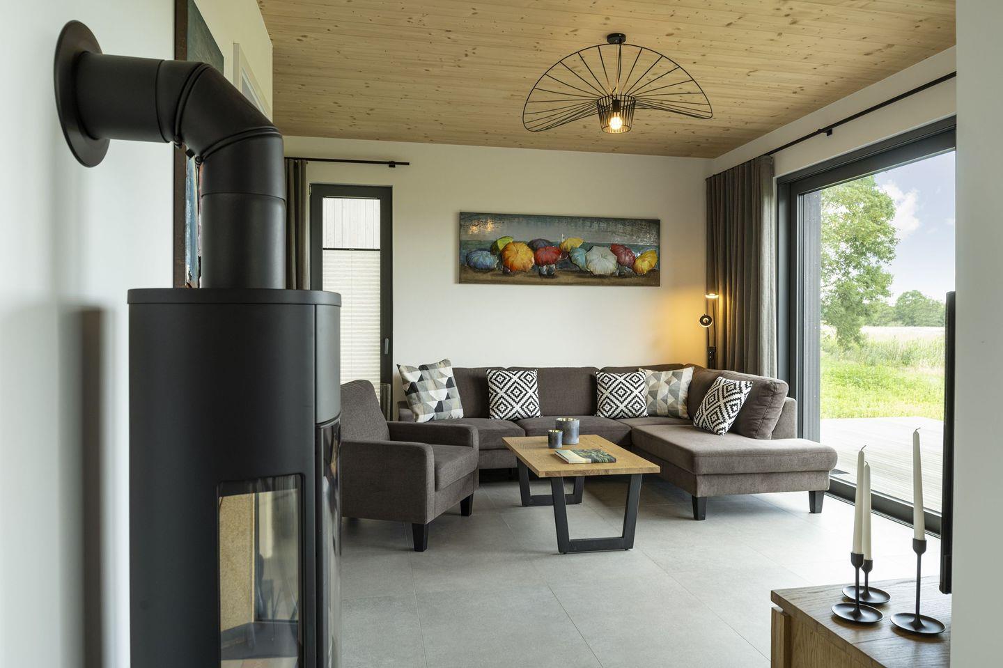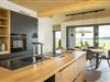 Das Herzstück des Hauses ist der großzügige Wohnbereich mit moderner, offener Küche inklusive Kochinsel, großem Essplatz, Kaminofen sowie einer gemütlichen Couchecke mit TV und Blick ins Grüne.