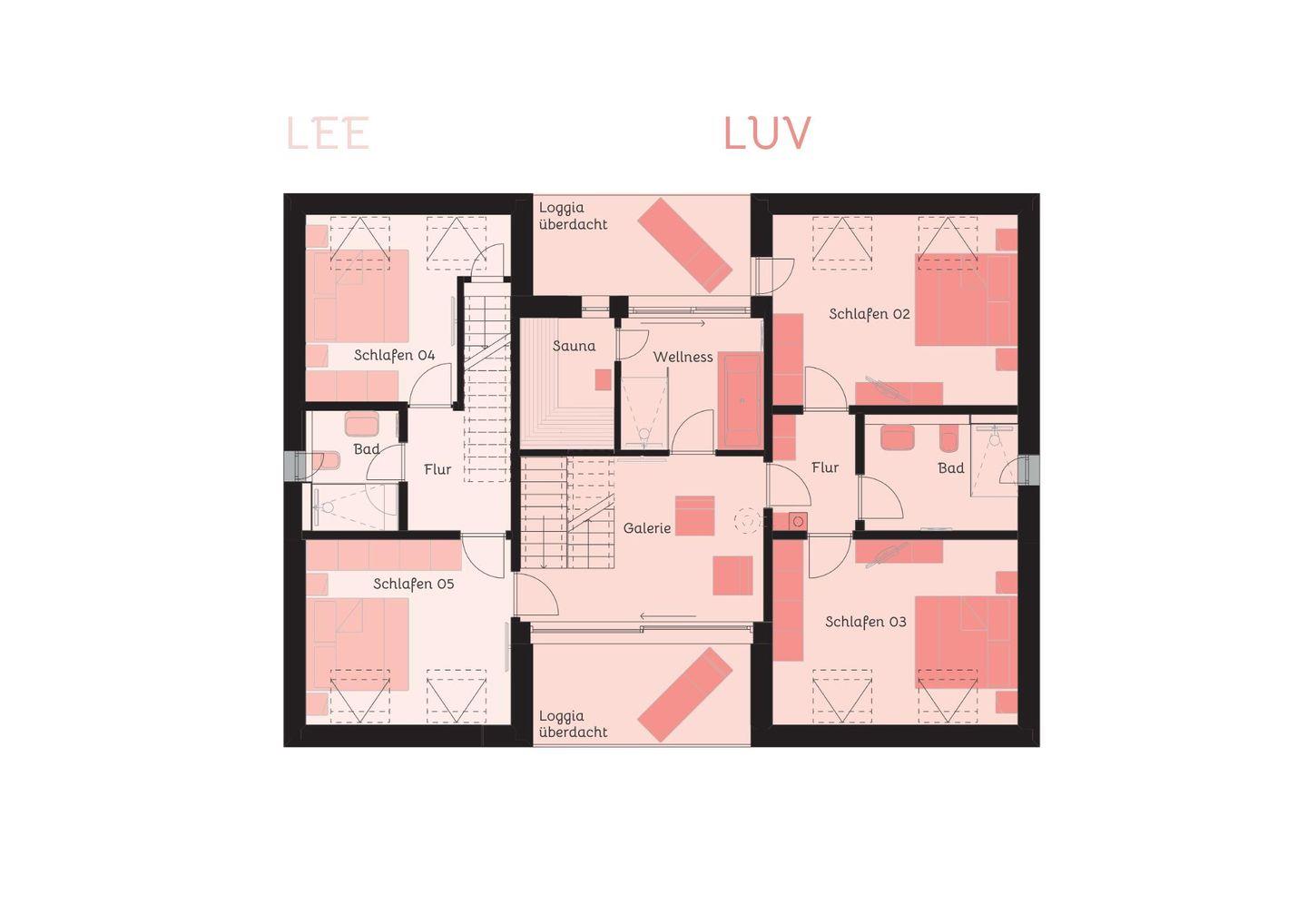 Bei Bedarf kann das benachbarte Ferienhaus „Lee“ mit zwei weiteren Schlafzimmern und Schlafsofa im Spitzboden dazugebucht werden – ideal für bis zu 6 zusätzliche Gäste.