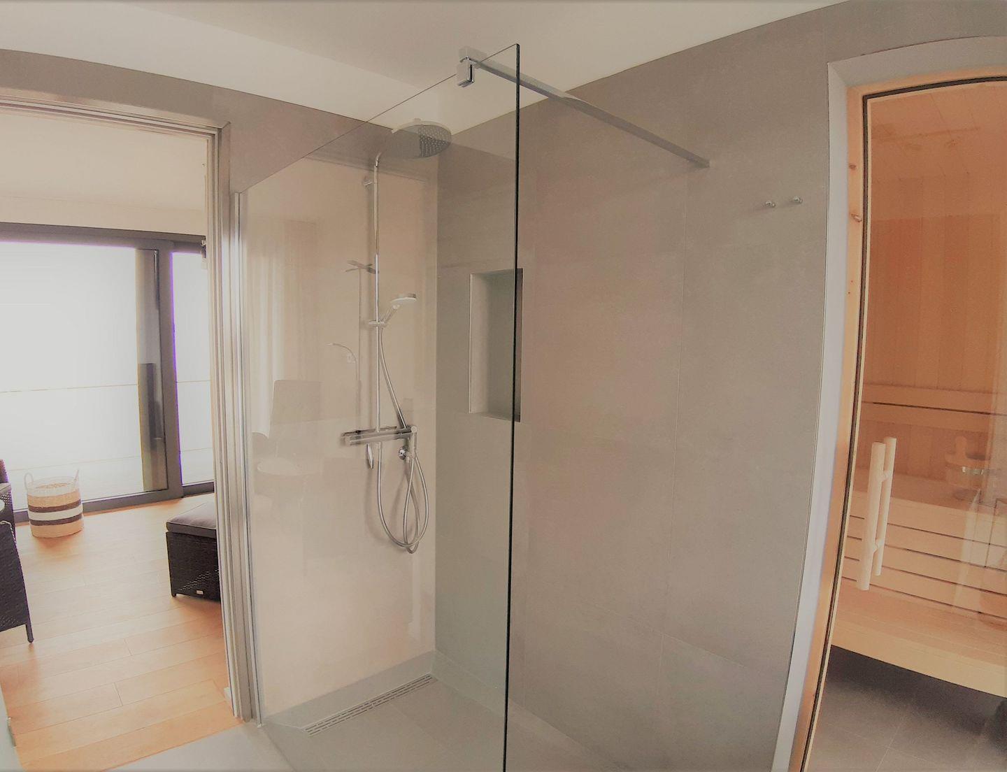 Wellnessbereich mit Sauna, Dusche, Wannenbad & Relaxzone mit Aussicht