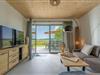 ein großzügiger Wohnbereich mit gemütlicher Couchecke, TV und Zugang zur Terrasse