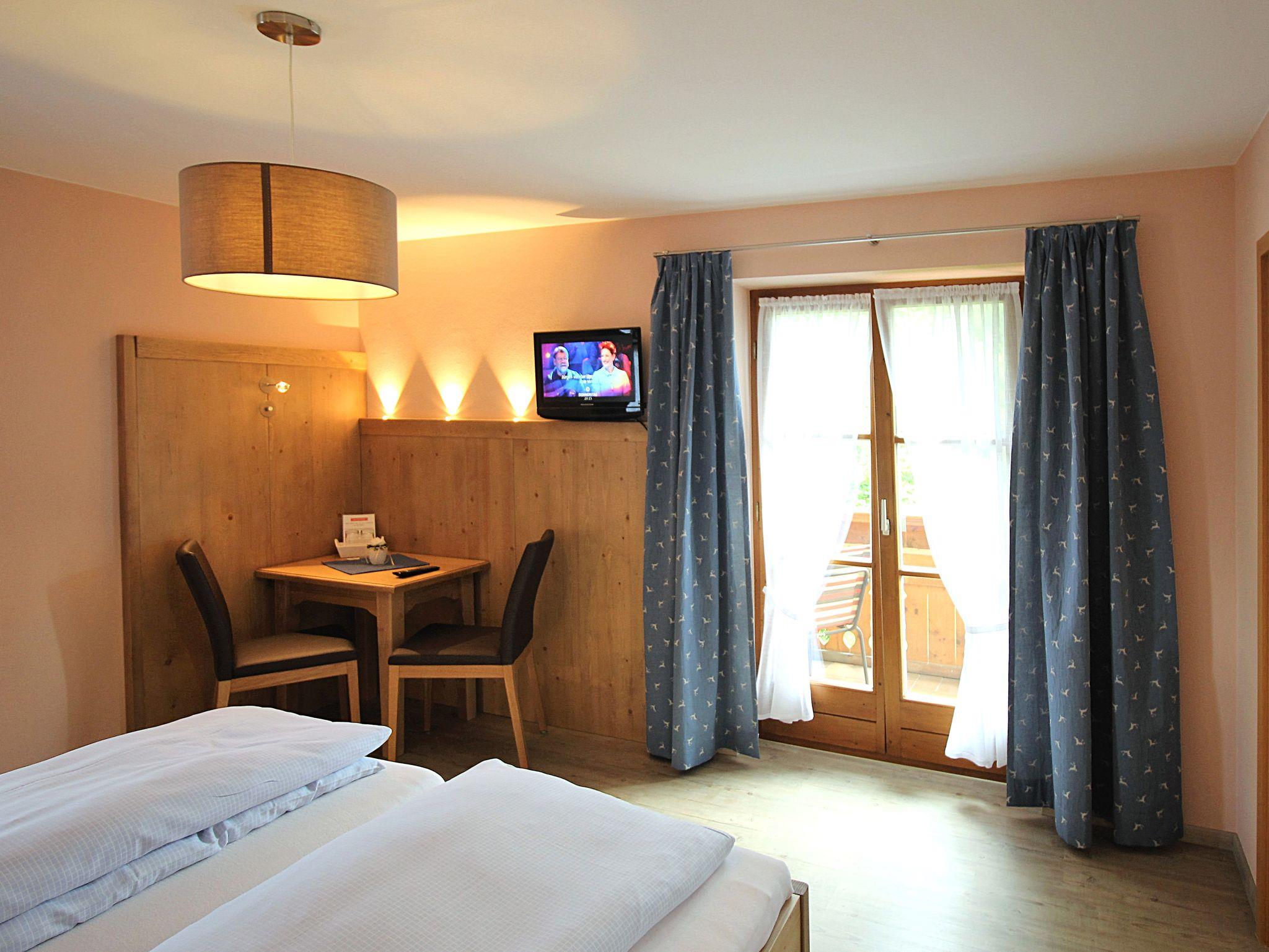 Das Zimmer wurde 2016 komplett neu renoviert. Ausstattung: Massivholz-Doppelbett, kleine Sitzecke mit Wandvertäfelung. Fußboden in Holzoptik, Sat-TV mit Flachbildschirm, kostenloses W-LAN und Zimmersafe, hochwertige LED-Beleuchtung. Badausstattung: Echtglas-Dusche, WC, Föhn, Seifenspender. Möblierter Balkon mit Blick in den Garten.