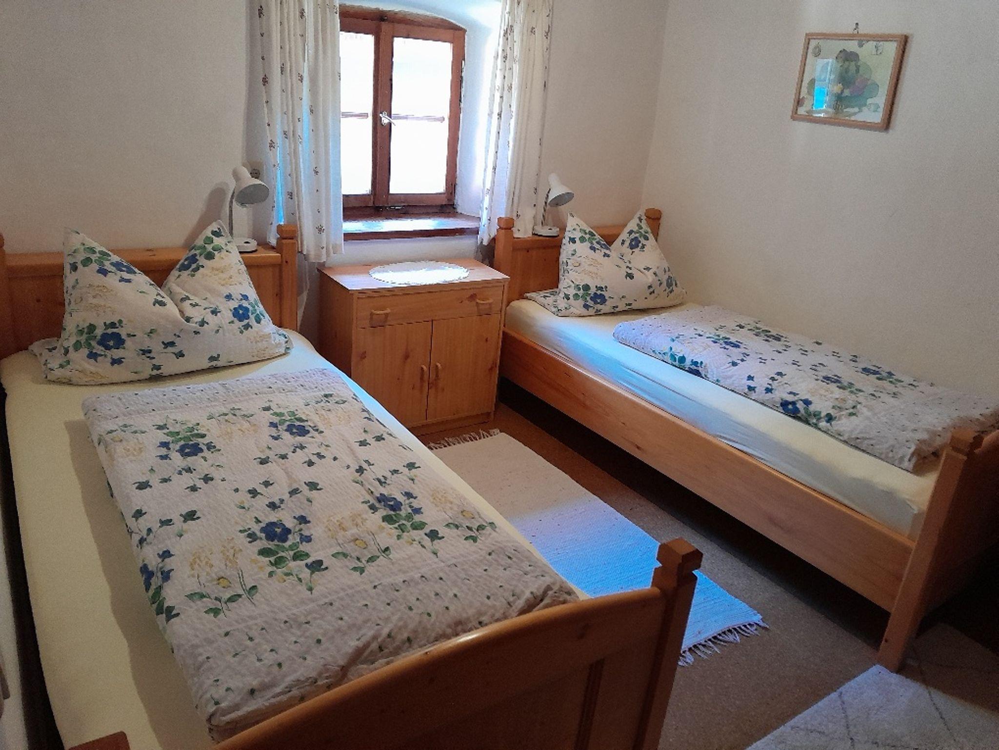 Die Ferienwohnung verfügt über eine komplett ausgestattete Küche ( E-Herd mit Backofen,Kaffeemaschine,Wasserkocher, Toaster, Geschirrspülmaschine)die im Wohnzimmer integriert ist. Gemütliche Essecke und Couch, Kabel TV, WLAN. 1 großes Schlafzimmer mit einem Doppelbett aus Zirbenholz, 1 Schlafzimmer mit 2 Einzelbetten, Dusche/WC. Überdachter Ostbalkon, der mit Gartenmöbel ausgestattet ist, eigenet sich zum Frühstücken oder auch nur zum Ausruhen. Wäscheleine und Wäscheständer. Blick in die Natur und Garten.