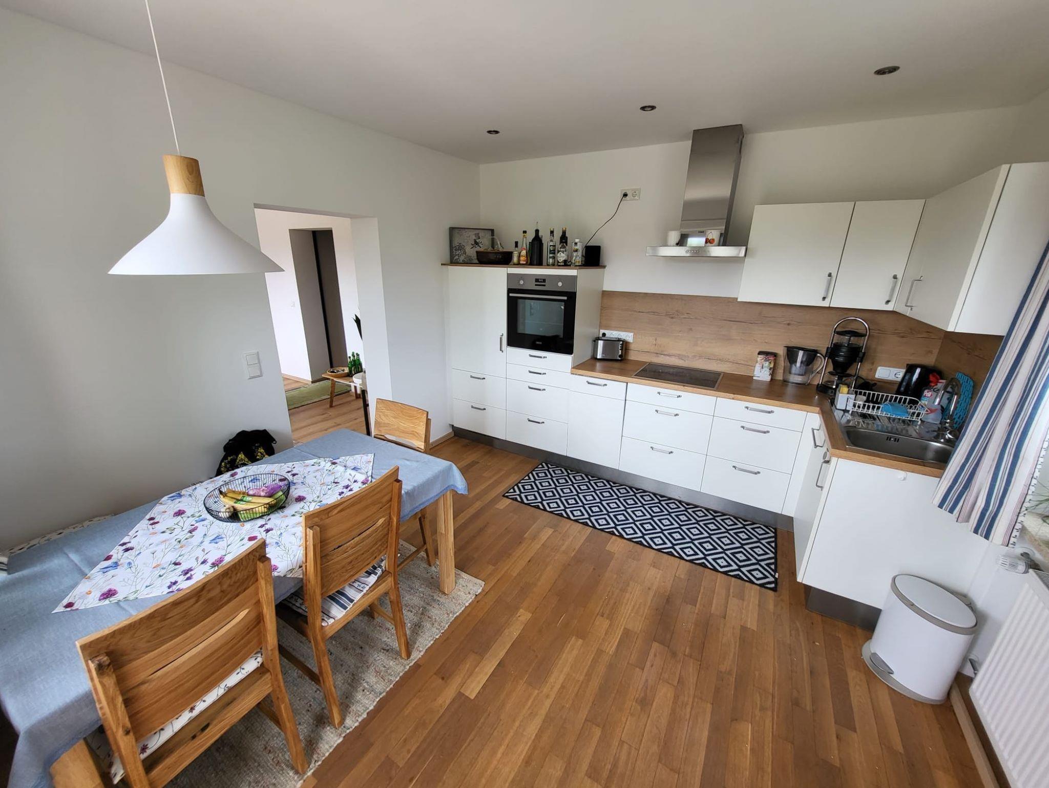Im Erdgeschoss befindet sich unsere großzügige gepflegte Ferienwohnung mit zwei Schlafzimmer. Jedes Schlafzimmer verfügt über ein eigenes Badezimmer mit Dusche und WC. Die Wohnung ist ideal für Familien geeignet. 2-4 Personen können hier eine entspannte Zeit genießen. 5. und 6. Person bitte auf Anfrage. Von der separaten Küche und vom Wohnzimmer haben Sie einen Zugang zur großen Terrasse, die nach Süden ausgerichtet ist und Ihnen einen traumhaften Panoramablick in unsere Berge bietet. Auf der großen Terrasse können Sie am Abend einen herrlichen Sonnenuntergang bei einem Gläschen Wein oder Bier genießen. Diese Wohnung kann auch mit nur 1 Schlafzimmer und 1 Bad zum ermäßigten Preis gebucht werden - bitte nachfragen.